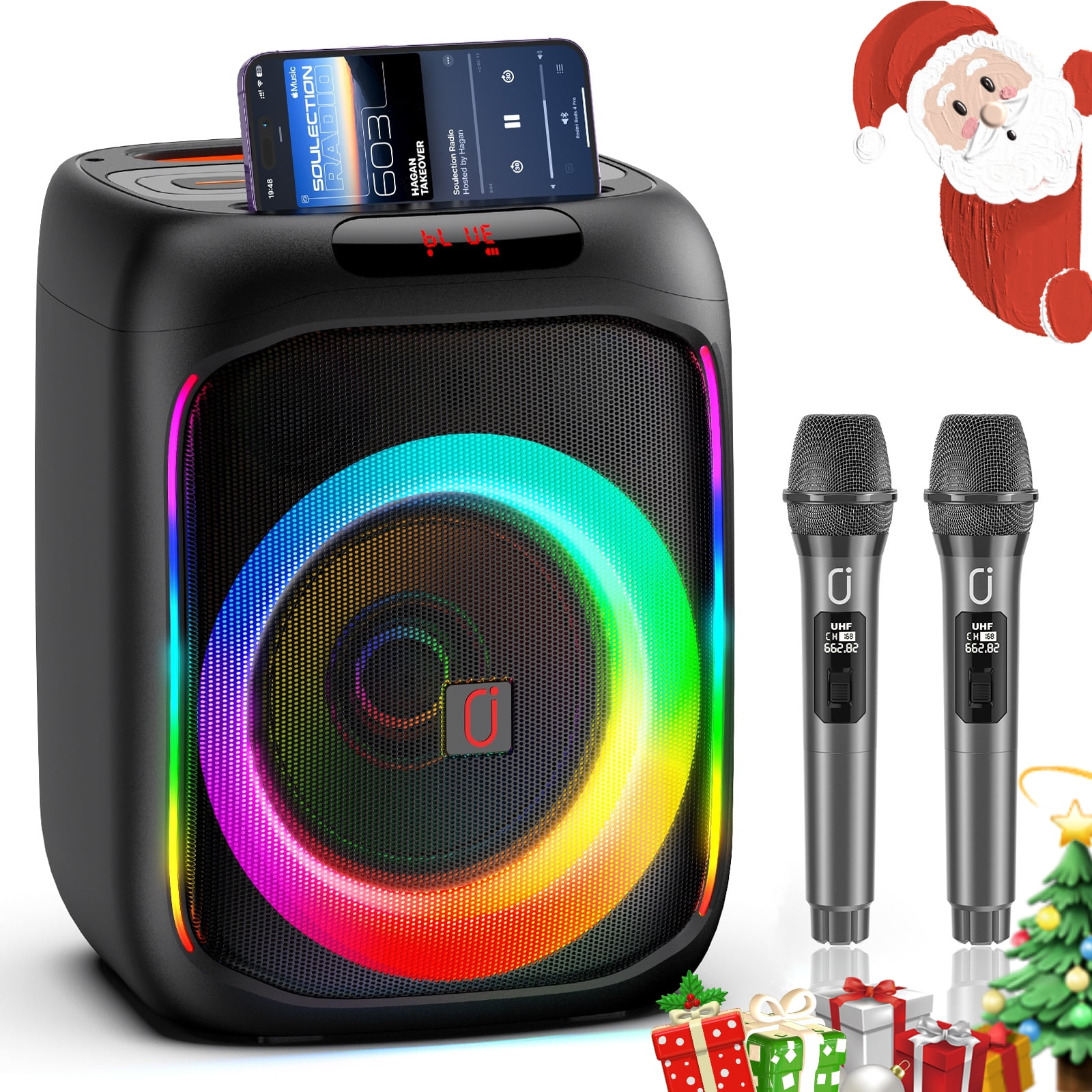 Compatible avec les téléphones mobiles Android, les téléviseurs, les iPad, les tablettes et les PC. Kit karaoke complet,Profitez du temps de musique avec vos amis Le son surround 3D et le réglage de l'écho créent une atmosphère vraiment immersive, rendant votre voix plus dynamique, parfaite pour chanter ou simplement écouter de la musique Un cadeau attentionné pour Noël, un anniversaire, la fête des mères, la fête des pères, Thanksgiving, un anniversaire de mariage ou toute autre occasion spéciale. Enceinte karaoke 2 micro sans fil [Une qualité sonore immersive, ressentez le rythme] --profitez d'un son haut de gamme grâce à un caisson de basses de 6,5 pouces et un son stéréo de 10 W. Micro Enceinte Karaoké Sans Fil Lumineux à Prix Karaoké avec micro [Portable et durable, jouez toute la journée] --profitez de 8 à 10 heures de lecture avec une charge de 4 heures. Remarque : vous devez télécharger l'application karaoké sur votre téléviseur avant de pouvoir utiliser le karaoké. Microphone Karaoké Sans Fil, 4-en-1 Bluetooth Micro Karaoké Portable... Enceinte Fête Lumières Karaoke Adulte, Enceinte Karaoke 2 Micro Sans Fil, Kit Karaoke Complet, Machine De Karaoké Portable Avec Système De Sonorisation, Support AUX/USB/TF Carte Lumières LED, Prend En Charge Enceinte Karaoké 600w Kit karaoke complet [Plusieurs options de connectivité, lecture musicale facile] -- a machine à karaoké est un système de divertissement tout-en-un qui prend en charge la connectivité Bluetooth, Micro TF card, Flash USB et AUX-in. Livrée avec 2 microphones sans fil pour s'amuser en duo. Karaoké avec micro [Portable et durable, jouez toute la journée] --profitez de 8 à 10 heures de lecture avec une charge de 4 heures. Son design compact et portable comprend une poignée de transport et une bandoulière, idéal pour les fêtes, le camping et les loisirs en déplacement Idéal pour les adultes comme pour les enfants Avec cet appareil, vous disposez d'un haut-parleur, d'un microphone, d'un lecteur et d'un amplificateur de guitare. Description du produit Enceinte karaoke 2 micro sans fil, Professionnel karaoké adulte & enfants Apportez de la joie, des rires et des moments inoubliables à vos proches