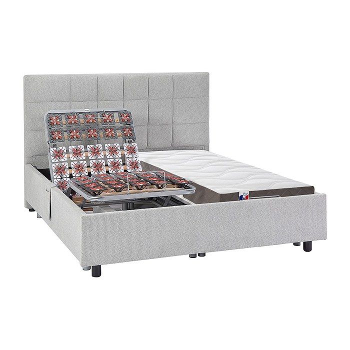 Technologie (sommier) : Tout plots Taille : 2x90x200 cm Garnissage du matelas : Ouate Technologie matelas (densité) : 20 kg/m³ 1 x Sommier de relaxation NAFURI Caractéristiques Couleur (nuance) : Blanc, Matière : Mdf Sommier de relaxation tout plots, Matelas accueil latex, Matelas et sommier compatibles Option (sommier) : Barre d'arrêt, Nombre de plots : 156, Plans de couchage : 5, Garantie : 5 ans Lit livré avec sommier avec matelas Degré d'inclinaison maximum (pieds) : 48 °, : 2 télécommandes, Dimensions Longueur : 200 cm, Hauteur : 35 cm, Profondeur : 180 cm Epaisseur matelas : 13 cm & Fermeté matelas : Ferme Sommier Tout Plots Matelas Latex 2x90x200 Blanc Lit électrique De Relaxation Lattes Et Plots + Matelas 100% Latex 3 Sommier Electrique 90x200 Ensemble relaxation tout plots matelas 100% latex 3 zones JUPITER de YSMÉE - chêne - 2x90x200 cm - moteurs marque OKIN de 2x4500 Newton - 5 plans de couchage 2 x Moteur OKIN vérin double avec Avertissement De Sûreté Avertissements de sécurité : La capacité maximale de poids du cadre de lit est de 120 kg. Profitez du confort exceptionnel de l'ensemble électrique de relaxation ETHER qui ofe un soutien précis grâce à son sommier tout plots. Polyester : Fibre synthétique la plus utilisée, le polyester est résistant, facile d'entretien (lavable), et a une bonne tenue avec peu de oissement Densité (accueil) : 60 kg/m³, Accueil : Moelleux Coutil (matière) : Coutil stretch, Couleur (nuance) : Blanc, Matière : 100 % Polyester Technologie matelas (accueil) : Latex Ensemble 90 x 200 cm sommier + matelas ressorts et mémoire de forme ép.15cm - WOLKENLOS de YSMÉE 2 x Matelas relaxation SAORI Caractéristiques Technologie (âme) : Mousse Nombre de places : 2 places, Avec pieds Taille (couchage) : 90 x 200 cm, Taille : 90x200 cm Taille (couchage) : 2 x 90 x 200 cm