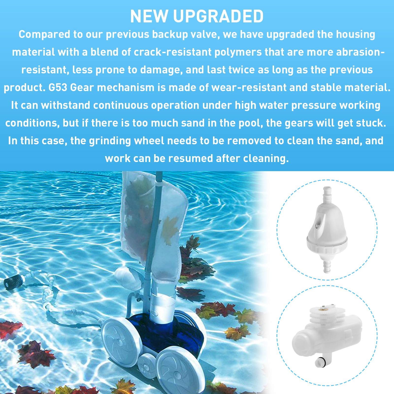 Contenu de l'emballage : 1 valve de secours. Valve de remplacement pour nettoyeur de piscine] : le mécanisme G53 est conçu pour les nettoyeurs 180, 280, 380 et 3900 en remplacement de la valve de secours G52 * La pièce de rechange est fabriquée en matériau solide et résistant à l'usure, bien testé par le fabricant. Matériau plastique : fabriqué à partir de plastique de qualité supérieure, cet équipement de rechange est léger, mais assez robuste pour résister à une utilisation régulière, une performance fiable et une durabilité durable. En cas d'obstruction causée par le sable ou les sédiments, retirez l'engrenage, nettoyez-le et réinstallez-le. Robuste et résistant à l'usure : fabriquée à partir de matériau résistant à l'usure, cette pièce de rechange a été soigneusement testée par le fabricant pour sa durabilité et sa longévité, elle peut résister aux exigences du nettoyage régulier de la piscine. Cela garantit une fonctionnalité optimale de l'équipement. Vanne de Secours G52, Remplacement renforcé de la Vanne à Tiroir G53... Garantit une longue durée de vie et une efficacité optimale. Vanne de Secours G52 PRÉNFLE, Remplacement renforcé de la Vanne à Accessoire Piscine Polaris Valve De Secours G52 De Rechange, Compatible Avec Les Nettoyeurs De Piscine Polaris 180 280 380 480 Et 3900 87587066 Valve G53 Polaris 280 380 【Compatible avec plusieurs modèles】Ce G53 de rechange est spécialement conçu pour les valves de secours 180, 280, 380, G52, les modèles de nettoyeur de piscine 480 Pro, 3900 Sport, pour Vac-Sweep 380, pour Vac-Sweep 280, 280 pour TankTrax, un ajustement parfait et une performance fiable. Avantages du remplacement : plus de fuites | Améliore le débit d'eau | Fixation simple et peu coûteuse | Le nettoyeur se déplace normalement. Gagnez du temps et lorsque le nouvel engrenage est installé, la sortie d'eau doit être alignée avec la sortie d'eau sur le boîtier. S'il y a du sable, des sédiments, veuillez retirer l'engrenage, nettoyer le sable et le réinstaller. Caractéristiques : *Matériau : plastique., *Couleur : blanc.