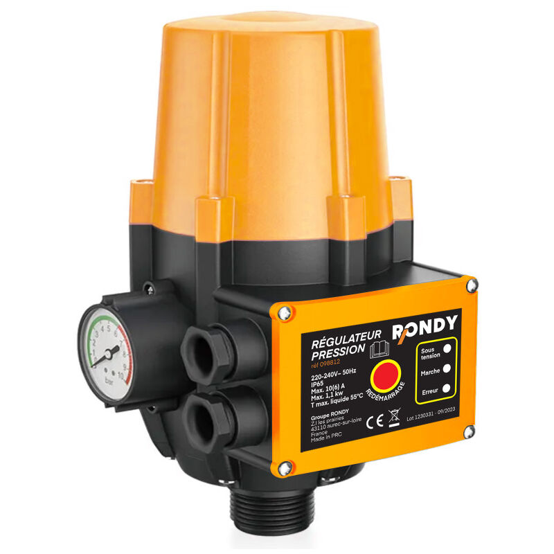 ✅ CLAPET ANTI-RETOUR INTÉGRÉ : Clapet anti-retour spécial intégré pour prévenir les surpressions et assurer un fonctionnement fluide et sécurisé du système de pompage. ✅ PROTECTION IP65 : Indice de protection IP65, assurant une résistance maximale contre la poussière et les projections d'eau, garantissant une utilisation sûre en environnements difficiles. ❤️ MARQUE FRANCAISE : Ce produit a été rigoureusement sélectionné et testé par nos équipes en Haute-Loire. Manomètre sec Axial 0 à 10 bars 63 1/4 - Pour applications industrielles Pièces de rechange en stock permanent. RÉGULATEUR DE PRESSION pour pompe - Manomètre gradué - 10 bars - EUR 50,90. À VENDRE! Pression max : 10 bar. Pression mini : 1,5 - 3 bar. 286664881093 Régulateur Pression Pompe Régulateur De Pression Avec Manomètre, Détendeur Avec Manomètre - Tous Les Fabricants Industriels Manomètre 10 Bars IP65 Caractéristiques techniques Alimentation : 220-240V~ 50Hz Puissance : 2,2 kW Pression mini : 1,5 - 3 bar Pression max : 10 bar Entrée / sortie : 1 (26x36mm) Manomètre gradué Indice de protection : IP65 Température max de l'eau : 55°C Longueur du câble : 1m prise Clapet anti-retour spécial pour éviter les surpressions