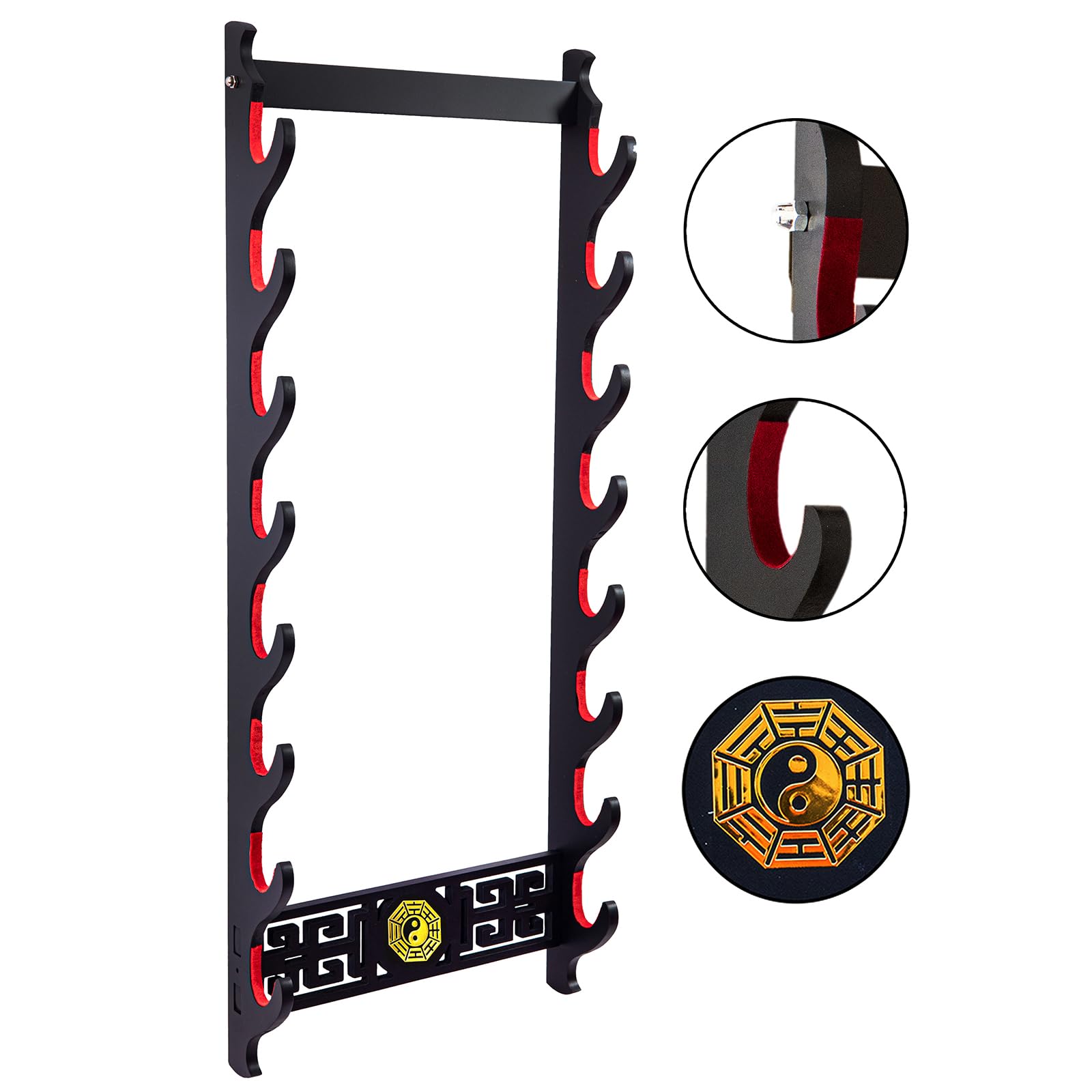 3 Étage Universel Samouraï Épée Katana Support Présentoir Stand Cadre Exposition Sabre Style Bagua FOXSMZZ Support Mural Pour éPéE Katana, IcôNe Tai Chi Décoration Katana Bagua Offrez un support mural décent pour votre porte-épée. Installez un cadre mural luxueux sur le mur et faites de votre épée un élément central dans la décoration de votre espace de vie La décoration de nœud chinois unique ajoute une décoration parfaite à votre épée et épée de samouraï Caractéristiques : Matériau : panneau de densité. La marge d'erreur de mesure est de +/- 1 à 3 centimètres. Il offre une belle apparence et un support en feutre fixe pour protéger votre épée des fourreaux et des objets exposés. · Design Bagua Convient pour différents types d'épées telles que les épées de samouraï, les épées wazaki, les épées Zoro, etc. Il offre une belle apparence et un revêtement en feutre stationnaire pour protéger votre épée des fourreaux et des objets exposés. Design Bagua : motif religieux chinois qui contient huit triangles du livre des changements et représente l'équilibre entre le yin et le yang. Matériau : bois compressé. Couleur Matériau : bois compressé., Couleur : noir. Contenu de la livraison : 1 porte-épée 1 nœud chinois.