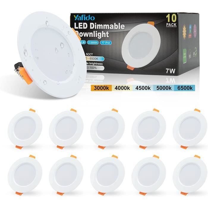 Spot encastré de 95 mm – couvre les ouvertures imprécises. Lot de 10 Spots LED Encastrables Valence 8W Orientable Equ. 75W Spot LED blanc encastrable d'une puissance de 24W éclairage équivalent à 120W. Très faible hauteur d'encastrement : 25mm de hauteur, 300mm de diamètre 【Faisceau lumineux précis à 60°】 : spot encastrable led, idéal pour les salons, les bureaux ou les locaux commerciaux,Spot led encastrable orientable n'est pas seulement idéal pour l'éclairage quotidien, mais aussi également pour créer une ambiance chaleureuse ou mettre en valeur des œuvres d'art et des meubles ! spot led encastrable Matériau métallique de haute qualité pour une dissipation optimale de la chaleur et des performances durables. Découvrez tous nos spots LED intérieurs fixes et encastrables au plafond ou mur. Leur faible profondeur d'encastrement permet une installation aisée dans les faux plafonds d'une ambiance chaleureuse à un éclairage de travail intense. 【Boîtier métallique robuste】 : spot encastré LED 95 mm 230 V. Lot Spot Led Encastrable Dimmable HiBay 8x Spot LED Encastrable Extra Plat 27mm Orientable 40°,5W Blanc Chaud 3000K 400LM,Trou 70-80mm,Spots De Plafond Inox 220V Pour Cuisine Salon Interieur Spot Dimmable