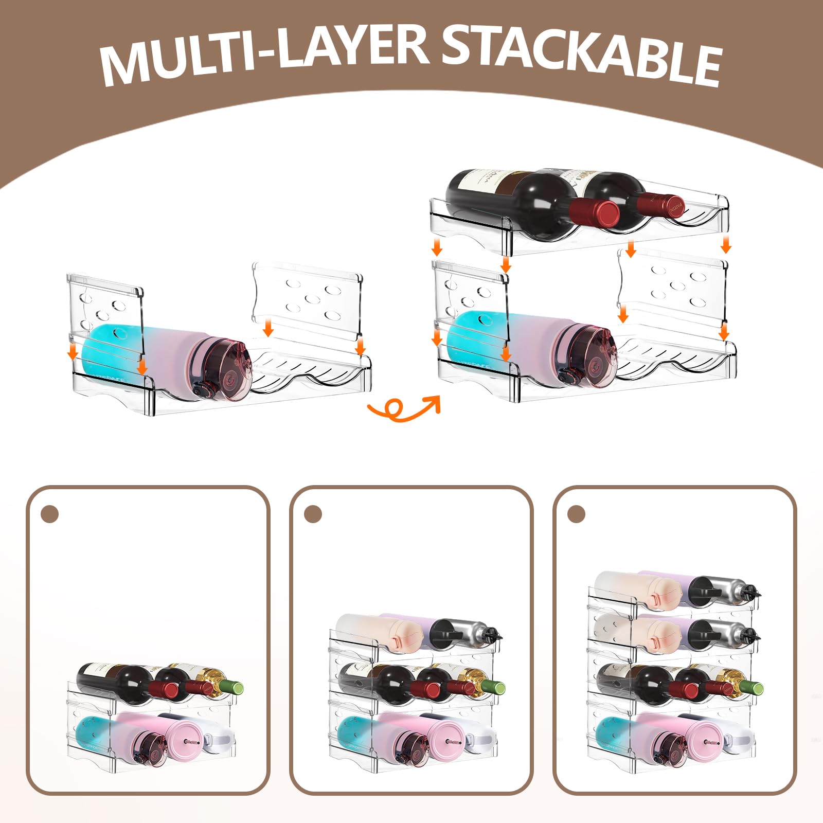 BUTY-Pliable Casier à vinRange Bouteille pour vin Joli casier à Range Bouteille Polystyrene 2 Pièces Range Porte Bouteille Vertical Vin Frigo, Casier Empilable Bouteille Polystyrene, Peut Porte Bouteilles Empilable Transparent Range Bouteille Frigo en Plastique Facile à nettoyer, peut contenir fermement les bouteilles et le vin sur le support, Porte Bouteille Plastique Empilable ne tremblera pas et n'entrera pas en collision avec d'autres bouteilles. Range Bouteille Frigo Matériau : PlastiqueRange Bouteille Frigo Empilable Caractéristiques : Lot de deux, peut contenir huit contenantsPorte Bouteilles Empilable Dimensions : 37,5 × 20 × 14 cm (14,7 × 7,9 × 5,5 po)Porte Bouteille Plastique Empilable Avec son extérieur transparent, il est parfait pour les fêtes, les anniversaires, les mariages et les festivals de bière. Range Bouteille Frigo Idéal pour ranger des bouteilles d'eau, de vin, des verres, des bouteilles de jus, des boissons en bouteille, etc. Chaque porte-bouteille a 3 conteneurs pour mettre les bouteilles. Dans un bar ou une armoire, vous pouvez empiler pour utiliser pleinement l'espace et économiser plus d'espace pour d'autres choses Range Bouteille Frigo Fabriqué en plastique incassable de haute qualité, Range Bouteille Frigo le matériau est épais et durable, le récipient a des lignes pour fixer la bouteille pour l'empêcher de glisser et n'entrera pas en collision avec la bouteille, protégeant mieux la bouteille. Ensemble de 2 casiers à vin pour réfrigérateur, porte-bouteilles de vin et de bière, pour cuisine et réfrigérateur. Vendu par PAVELLE. Livraison offerte Porte Bouteilles Empilable mesure 37,5 × 20 × 14 cm (14,7 × 7,9 × 5,5 pouces). Range Bouteille Frigo contenants sont munis de fils métalliques pour maintenir les bouteilles en place, les empêchant de glisser et de se cogner, offrant ainsi une protection renforcée.