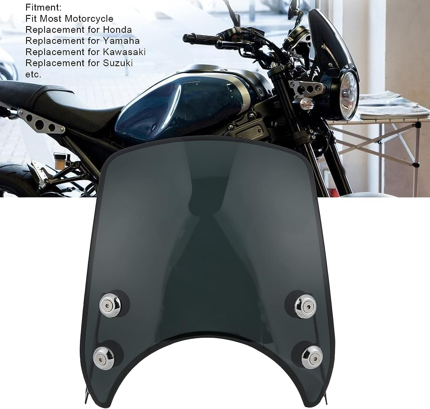 Spécifications: Matériau : plastique + métal Couleur : noir. Facile à installer et à démonter, design standardisé, connexion solide, pas facile à détacher. Réduisez la vitesse du vent et le flux d'air pour une conduite plus confortable. Cela signifie qu'il est plus durable que le plastique ABS., Super facile à installer. ★TAILLE UNIVERSELLE : ce pare-brise de moto convient aux phares ronds de 5 à 7 pouces. Pare-brise Phare Moto Universel Acheter Pare-brise De Phare De Moto Rétro 5 -7 , Déflecteur De Vent Universel Pour Harley Honda Yamaha Instrument Pare-brise Moto Universel La compatibilité est donnée uniquement à titre de référence. Deux méthodes de fixation (avec deux supports de vélo électrique) Convient pour YAM XJ 400 Diversion 1991-1993 Convient pour YAM XJ 600S Diversion 1992-2004 Convient pour YAM XJR 1200 1994-1998 Convient pour YAM XJR 1300 1999-2016 Convient pour Suzuki VX 800/SV 650/GS 500E/GSF 600N 1200N. ★ PROTÉGEZ VOTRE ÉLECTRONIQUE : le pare-brise offre une certaine protection pour votre système de navigation et votre téléphone coûteux. Pare-brise clair MRA V-Flow VFSC universel pour motos Naked - Pièces... Caracteristiques Fabriqué en matériau de haute qualité, ce qui rend le produit plus écologique et plus durable et a une longue durée de vie. Facile à assembler et à démonter, design standardisé, connexion solide, pas facile à perdre. Contenu : 1 kit de pare-brise. Facile à installer et aucune opération compliquée nécessaire. Découvrez notre pare-brise pour moto, conçu pour offrir une protection optimale tout en ajoutant une touche d'élégance à votre véhicule. Fabriqué avec des matériaux de haute qualité, ce pare-brise est parfait pour les motards soucieux de leur confort et de leur style Phare Rond Universel De 5 à 7 Pouces, Carénage De Pare-brise Placement sur le véhicule : avant Caractéristiques : Ajustement universel pour phares de 5-7 .
