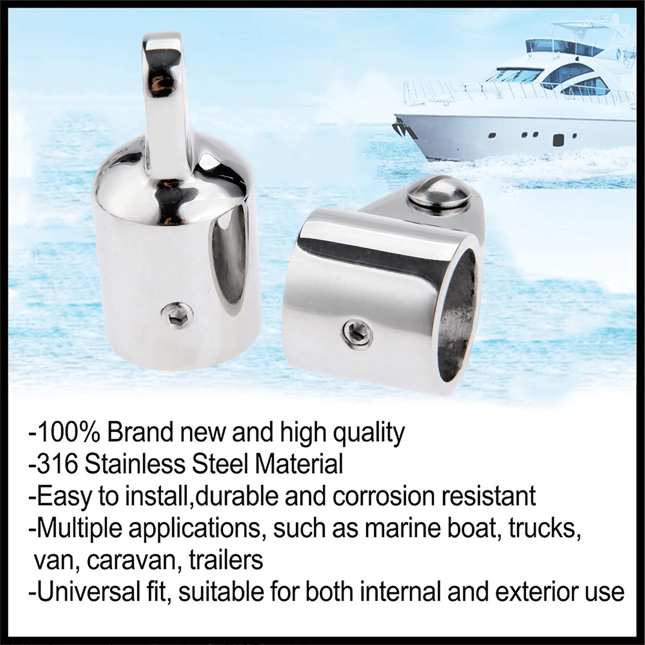 Aramox vous apportera des solutions satisfaisantes. Matériel De Montage Supérieur Bimini, Support De Charnière De Pont De Bateau Marin Anti Usure Pour Kayak Application: Cette glissière de mâchoire de bateau utilisée dans les bateaux, yachts, yachts en fibre de verre, yachts gonflables, yachts commerciaux et autres types de yachts Service client Aramox: produit de qualité supérieure et 12 mois de sans souci. Matériau en acier inoxydable construit en acier inoxydable de haute qualité, résistant à la corrosion, imperméable et La fabrication de précision garantit des performances stables et une longue durée de vie. Garosa Capuchon supérieur Bimini 25.6mm Bateau Bimini Top Cap Canopy... Si vous avez des questions sur ce produit, n'hésitez pas à nous contacter. Spécification: Condition: tout neuf Type d'élément: glissière de mâchoire de bateau Matériau: acier inoxydable Couleur: Argent Taille facultative: environ 22 mm/0,9 pouces, 25 mm/1 pouces Application: utilisé dans les bateaux, yachts, yachts en fibre de verre, yachts gonflables, yachts commerciaux et autres types de yachts Liste des packages: 2 x glissière de mâchoire de bateau Raccord Bimini Yacht 25mm Glissière De Mâchoire De Bateau De 2Pcs, Raccord De Matériel Raccord Bimini Marine Inoxydable 25mm