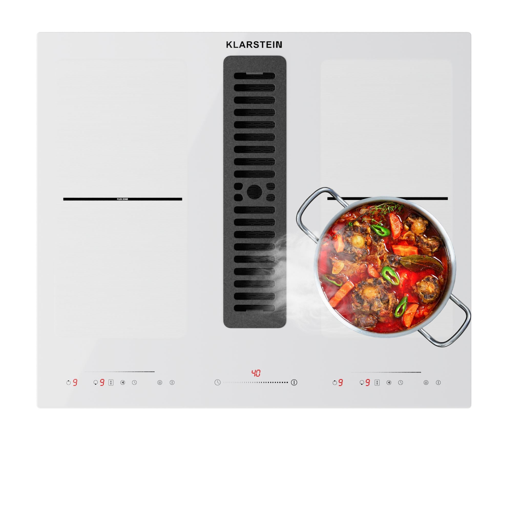 FLEXIBILITÉ MAXIMALE : Profitez d'une puissance d'induction de 7200 W avec Flex-Zone et fonction boost jusqu'à 8400 W, idéale pour une table de cuisson avec hotte intégrée. PURSU Table de cuisson à induction intégrée avec hotte intégrée By Bora Découvrez l'innovation ultime en design de cuisine avec le système Klarstein Chef-Fusion DownAir combinant table à induction et hotte intégrée. GAIN DE PLACE : Le design mince de cette table de cuisson avec hotte intégrée optimise l'espace de stockage dans les meubles hauts et bas. DESIGN : parfaitement intégrée dans le plan de travail de la cuisine grâce à une élégante surface en verre, cette table de cuisson avec hotte intégrée allie style et fonctionnalité. HAUTE EFFICACITÉ : Profitez d'une aspiration puissante de 590 m³/h grâce au moteur à courant continu tout en économisant de l'énergie avec une efficacité de classe A. Ce système idéal pour toutes configurations redéfinit l'aménagement de votre cuisine et offre une finition moderne. Klarstein Chef-Fusion Down Air System 2-en-1 Plaque De Cuisson A Induction Hotte Aspirante 90 Cm 7200 W Blanc 95225099 SOLUTION 2 EN 1 : Combinez une table de cuisson à induction puissante avec une hotte intégrée efficace pour une cuisine moderne et fonctionnelle. Avec un moteur puissant, il offre une aspiration de 590 m³/h et une efficacité énergétique de classe A. Sa conception en acier inoxydable et verre assure durabilité et intégration parfaite. Le système DownAir Chef-Fusion offre une combinaison exceptionnelle de hotte aspirante et de plaque à induction qui impressionne non seulement par sa fonctionnalité, mais aussi par son design esthétique. Ce système d'aspiration pour table de cuisson intelligent allie... Table Induction Gain De Place ED875FS11E Table De Cuisson à Induction Avec Hotte Intégrée | Siemens Plaque Avec Hotte Intégrée Avec une puissance totale de 7200 W, une fonction boost à 8400 W et un moteur flexible, ce système répond à tous vos besoins.