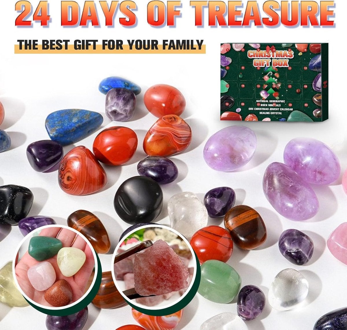 Joie de Noël partagée : vivez la magie de l'art du cristal avec vos proches, ce calendrier crée des souvenirs précieux et convient comme cadeau de Noël pour tous les âges avec des moments spéciaux de connectivité Âge approprié : enfants, adolescents et adultes Emballage : coffret cadeau avec motif de pièce avec chaque porte correspond à une pierre précieuse Contenu supplémentaire : cartes d'introduction détaillées qui expliquent les propriétés et les faits de chaque pierre précieuse. Offrez un calendrier de l'avent personnalisé compte à rebours Noël magique bois gravé et confectionné en France dans notre atelier. Expédition sous 48h Les cristaux sont soigneusement sélectionnés pour leur pureté et leur beauté. Le calendrier mesure environ 27x25x6 cm et inclut un sac de rangement pratique... Aventures spatiales imaginatives : combine l'inspiration cosmique avec des découvertes quotidiennes de pierres précieuses pour créer des moments importants de compte à rebours de Noël et encourager le désir d'exploration pendant la période des fêtes Très heureux de partager une belle initiative réalisée par l’AEGI en Jouets éducatifs décoratifs : ce calendrier de compte à rebours en cristal 2025 renforce les liens familiaux grâce à des fonctions décoratives ludiques, améliore l'éducation esthétique et offre des possibilités de présentation variables sur le bureau des enfants Kit de découverte géologique : contient 24 pierres naturelles avec des cartes scientifiques assorties qui rendent les enfants curieux grâce à des activités pratiques d'analyse des couleurs et des textures et favorisent leur passion de collection Calendrier Avent Pierres Précieuses Calendrier De L Avent Pierres Précieuses Calendrier De L'avent : Ma Collection De Pierres En 24 Jours - Tortue De Jade Back To The Future Coffret Pierres Précieuses éducatif Description de la fonction : Carte de Noël : ouvrez une porte chaque jour pour découvrir une pierre précieuse et comptez jusqu'à Noël Apprendre : découvrez les connaissances et le contexte culturel de différentes pierres précieuses à travers des cartes détaillées Artisanat : libère votre créativité et votre imagination en créant des bijoux avec des pierres précieuses Décoration et collection : présentoir pierres précieuses dans votre maison pour ajouter une touche de nature et de valeur à collectionner Contenu : 1 calendrier de compte à rebours avec pierres précieuses (24 pierres précieuses). Ramenez la magie des vacances à la maison avec ce calendrier de compte à rebours festif conçu pour tous les âges. Poids de la boîte cadeau : environ 300 à 350 g.