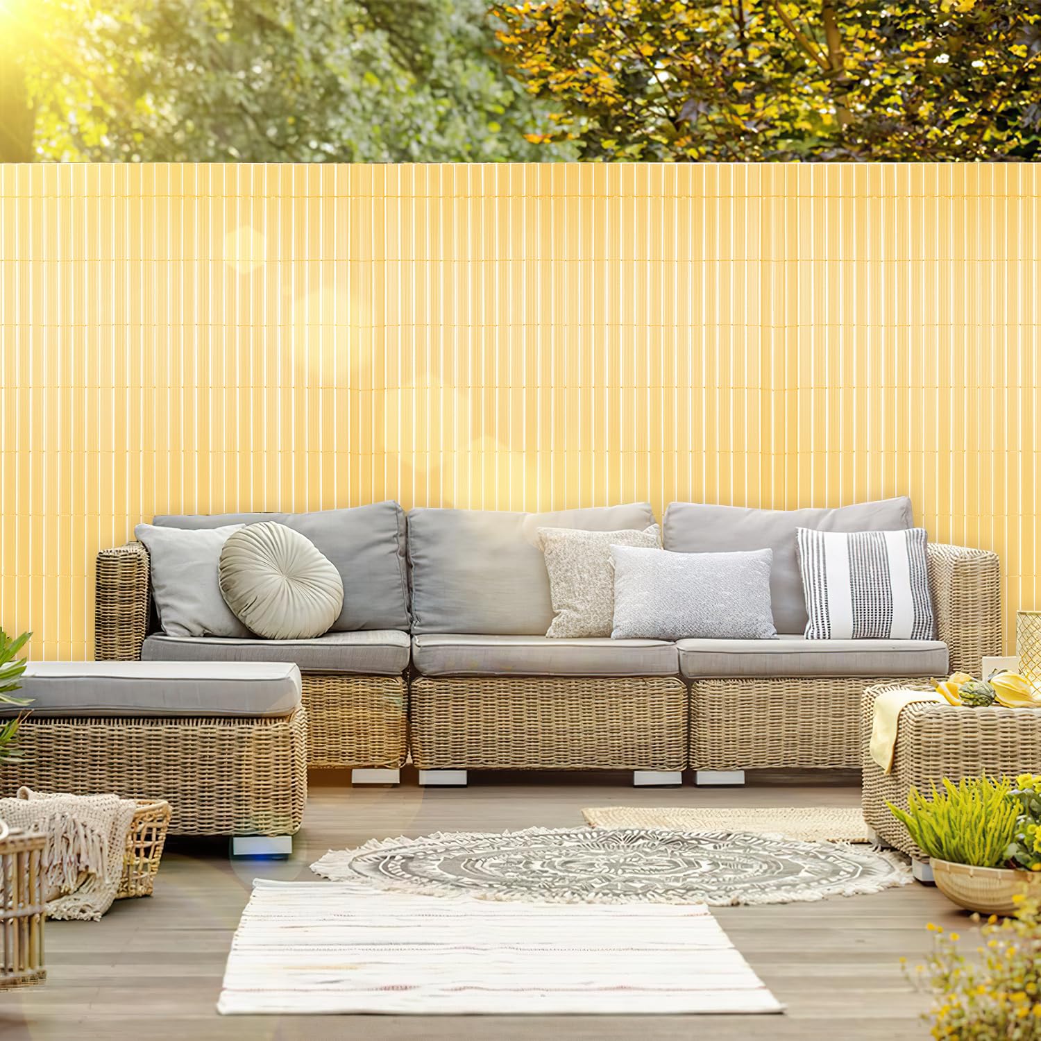 Parfait pour les solutions extérieures durables avec une longue durée de vie. Idéal comme brise-vue pour véranda, protection contre le vent ou pour créer de l'ombre. Le matériau robuste garantit des années d'utilisation sans perte de qualité et est facile d'entretien. Avec instructions de montage détaillées pour une installation sans stress. Le brise-vue décoratif de jardin s'harmonise avec les clôtures métalliques et crée des accents esthétiques. Brise-vue Balcon PVC Spetebo Brise-vue Pour Balcon 600 X 75 Cm, Protection Et Cou En Ance Brise-vue Flexible Avec œillets Idéal pour les citadins et les amateurs de jardin qui recherchent une protection solaire et coupe-vent flexible. Le brise-vue polyvalent en PVC est une solution d'entrée de gamme pour les amateurs de bricolage ou une solution instantanée pour les balcons de location. Transformez votre extérieur en une oasis privée dès maintenant – commandez ce brise-vue polyvalent en PVC en un clic ! Le design anthracite moderne s'adapte à tous les styles d'intérieur, que ce soit minimaliste ou urbain. Le brise-vue anthracite de 600 x 120 cm en PVC de qualité supérieure allie parfaitement fonctionnalité et design moderne pour votre espace extérieur. Idéal comme brise-vue pour véranda, protection contre le vent ou pour créer de l'ombre Le brise-vue anthracite de 600 x 120 cm en PVC de qualité supérieure allie parfaitement fonctionnalité et design moderne pour votre espace extérieur. Le film de clôture robuste convainc par sa facilité d'entretien et résiste même aux conditions météorologiques extrêmes (600 x 120 cm). Les espacements compacts des œillets permettent une adaptation individuelle aux systèmes de clôture. Dimensions pratiques : avec 600 x 120 cm (l x H), le brise-vue offre une protection optimale contre les regards indiscrets. Ce brise-vue de balcon offre à la fois fonctionnalité et style pour votre espace extérieur Brise-vue pour balcon - Motif Art déco plumes avec frise 600 x 130 cm Brise-vue peu encombrant pour balcon et terrasse avec dimensions de 600 x 120 cm – crée de l'intimité dans les espaces restreints.