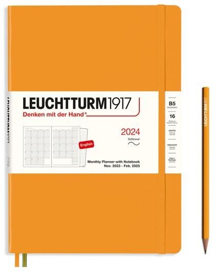 Avec fermeture élastique, deux marque-pages et une poche pliante dans la couverture, ainsi que des étiquettes de titre et de dos pour écrire et archiver., Dimensions : 178 x 254 mm Agenda Semainier & Carnet 14,5x21cm souple français L'agenda Semainier & Note Ligné 2026 de LEUCHTTURM1917, ici décliné en Rising Sun au format Composition (B5) avec couverture rigide (Hardcover), combine intelligemment planification hebdomadaire et prise de notes Le modèle populaire de calendrier combine nos aides quotidiennes préférées, le calendrier et le carnet de notes de manière particulièrement claire. 12 mois (du 1er janvier 2026 au 31 décembre 2026), la symbiose parfaite de calendrier et de carnet avec couverture rigide au format Composite (17,8 x 25,4 cm). Agenda Semainier & Note Ligné 2026 LEUCHTTURM1917, Anglais - B5 - Hardcover - Rising Sun - L'agenda Semainier & Note Ligné 2026 de LEUCHTTURM1917, ici décliné en Rising Sun au format Composition (B5) avec couverture rigide (Hardcover), combine intelligemment planification hebdomadaire et prise de notes. Conçu pour couvrir toute l'année 2026, il propose à chaque ouverture une page... Avec un aperçu de 3 ans (2025, 2026, 2027), un planificateur de projet, quelques feuilles détachables pour les notes à l'arrière du calendrier, les phases de la lune et les jours fériés internationaux. L'agenda hebdomadaire et le carnet offrent une semaine complète sur la page de gauche et une page lignée à droite pour des notes supplémentaires. Weekly Planner LEUCHTTURM1917 367757 Composition (B5) Agenda Semainier Et Bloc Agenda B5 Couverture Rigide