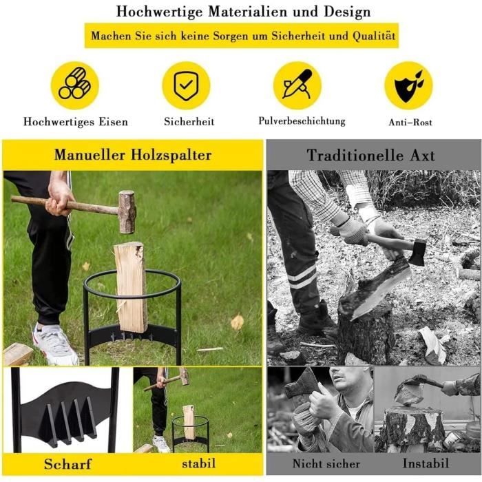 *Facile à utiliser : sans bords, ce distributeur de petit bois est totalement sûr et facile à utiliser. Ce revêtement assure non seulement la sécurité pendant le transport, mais protège également vos mains pendant l'utilisation. Conception axée sur la sécurité : la lame dispose d'un revêtement de protection en silic qui protège vos mains pendant le fonctionnement tout en le transportant en toute sécurité. Nombre de pièces : 1 pièce. Il suffit de placer le bois dans le fendeur de bûches manuel, de le frapper avec un marteau et d'obtenir facilement du bois de chauffage coupé. Outil de fendage de bois, fendeur de bois de chauffage torsadé à haute résistance Durabilité... Fendeuses À Bois Portables, Fendeuse De Bûches Manuelle en Fonte, Coin De Fendage De Bûches De Le design compact mais robuste résiste aux tâches répétées, ce qui en fait le compagnon fiable pour votre cheminée, four, petit poêle à bois et besoins de cuisine en plein air. Montez-le en toute sécurité sur votre travail en quelques minutes et commencez immédiatement à préparer votre approvisionnement en bois de chauffage avec une plus grande efficacité. Fendage des bûches sans effort : il suffit de placer le bois dans le fendeur, de frapper avec un marteau et de regarder les bûches se séparer avec un minimum d'effort. * Taille : longueur de la lame : 102 mm. Fendeuse A Bois Fendeuse De Bûches Manuelle Coin Fendeur à Bois Manuel - Acier Mn - Pour Camping Et Survie Coin Pour Fendre Le Bois Fendeuse De Buches Manuelle Fendeuse de bûches - Fendeuse de bûches - Fendeuse de bûches - pour le bois d'allumage Vous pouvez commencer à fractionner les journaux en un rien de temps. Il est parfait pour les cheminées, les fours, les petits poêles à bois, et plus encore. Caractéristiques : * Nom du produit : fendeuse à bois manuelle., *Matériau : métal. Caractéristiques : * & Robustesse : fabriqué à partir de matériau solide et métallique, notre fendeuse manuelle est conçue pour être compacte et robuste, utilisation à long terme. Vous pouvez même l'utiliser à la main. Installation rapide avec base sécurisée : la base ronde de 110 mm de diamètre est livrée avec des trous de montage pré-percés et 4 vis incluses pour une installation sans tracas.