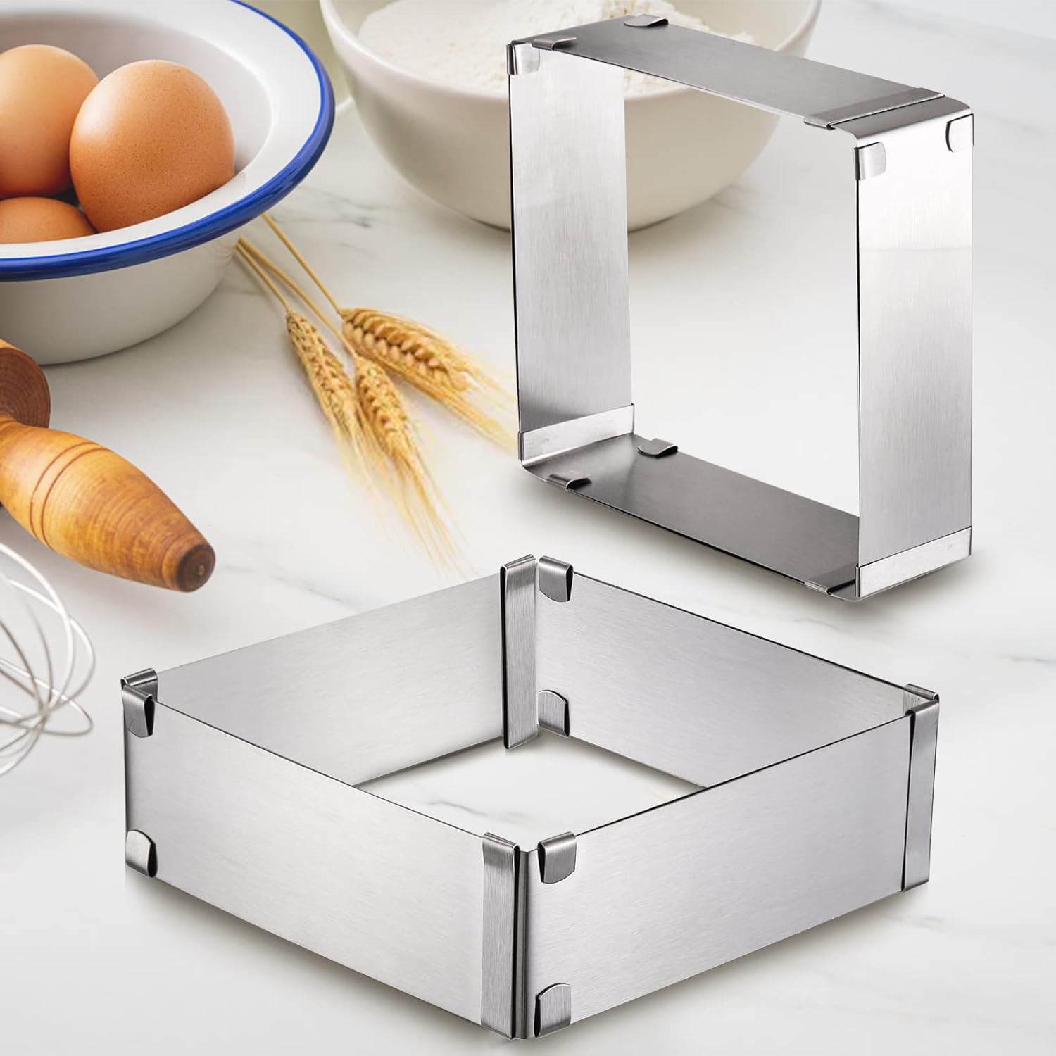 Un accessoire indispensable dans la cuisine. Matériaux de qualité supérieure : le cercle à gâteau rectangulaire réglable et la spatule à gâteau sont fabriquées en acier inoxydable de qualité supérieure., Antirouille et durable. Cadeau parfait : le cercle à gâteau réglable est parfait pour les fêtes de famille ou de famille - mariages, anniversaires, Noël et plus encore. Cadre A Gateau Rectangle Cadre De Cuisson Rectangulaire Réglable Avec Séparateur Et Spatule, Réutilisable, En Acier Inoxydable, Plaque De Cuisson Extensible Pour Gâteaux En Couches, Gâteaux, Pizzas Moule à Genoise Rectangulaire Maison - Découvrez notre offre Cadre De Cuisson Rectangulaire Réglable - 5 Cm De Haut En Acier Inoxydable Moule Rectangulaire Pour La Préparation De Gâteaux [J344 Description du produit Accessoires de pâtisserie professionnels : vous recevrez 1 x cadre de cuisson rectangulaire avec séparateur, 1 x séparateur en plastique blanc, 2 x spatule à glaçage avec manche noir, des outils de cuisson professionnels pour vos besoins quotidiens en pâtisserie. Vous pouvez faire des gâteaux de différentes tailles à votre guise et profiter de toutes sortes de... Rosenstein & Söhne moules à gâteau: Set de 4 cadres à pâtisserie en acier inoxydable, réglable jusqu'à 47 x 38 cm (moule à charnière en acier inoxydable