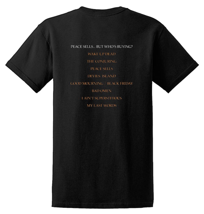 This high quality t-shirt design is available in the black colourway. An official licensed Megadeth Unisex Tee featuring the 'Peace Sells… Track list' design motif. High quality soft-style cotton unisex t-shirt Still for the pleasure of the eyes, here is my very first lifetime Megadeth t-shirt, very good quality, brand new and at a good price, as well as a CD to add Don't bleach, dry low, don't iron decoration. METAL TİŞÖRT kategorisinde Megadeth Tshirt-PEACE SELLS T-shirt Coton Heavy Metal Megadeth T Shirt Peace Sells Track List Band Logo Officiel Collection Megadeth Licensed Description du produit An official licensed Megadeth Unisex Tee featuring the 'Peace Sells' design motif. This high quality t-shirt design is available in the black colourway. Comes in a wide range of sizes from Small through XX-Large, subject to availability