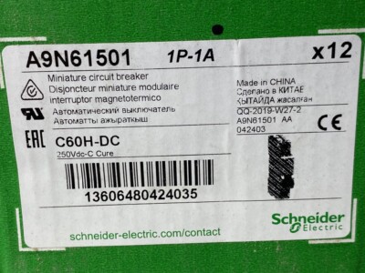 Thermique-magnétique technologie de déclencheur C60H-DC 1P 4A C 250Vdc Courbe de déclenchement C : protection contre les surintensités pour tout type d'application Protection Courant Continu M9U21150 - Multi9 C60H-DC - Disjoncteur - 1P - 50A C 250V-DC - Schneider Disjoncteur C60H-DC Courbe C DISJONCTEUR C60H-DC 250VDC 4A 1P C MGN61504 Schneider sur Commandez Multi9 C60H-DC - disjoncteur - 1P - 4A C 250V-DC chez , leader de la distribution professionnelle de matériel électrique Schneider Electric A9N61524 C60H-DC - Hutschienenmontage, 2P, 4 A, 500 V DC Neu