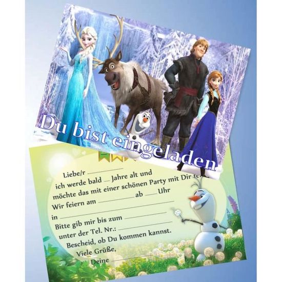 Invitation Vaiana 10 CARTES INVITATION ANNIVERSAIRE LA REINE DES NEIGES FROZEN In French Kit 6 Cartes Enveloppes Thème Skating Beaux-Arts et Loisirs créatifs - Découvrez notre offre Generique - 6 Cartes Invitations enveloppes La Reine des Neiges34. Livraison gratuite à partir de 25€* | Paiement sécurisé | 4x possible | Retour simple et rapide Ce lot contient 6 cartons d'invitation et 6 enveloppes sous licence officielle La Reine des Neiges 2™. Les enveloppes sont en papier de couleur bleu ciel, on retrouve sur les invitations, les sœurs Elsa, Anna et Olaf, à l'intérieur vous pourrez noter les informations nécessaires pour l'anniversaire 6 Invitations featuring: FROZEN ICE SKATING for birthday party or fancy dress party;from Cardboard and in Form one Snow flake;to suitable, blue Envelopes;Download They Their Guests on one cool Party a / one;It is added to this series more suitable products: plates, cups, bags, placemats, drinking straws, ., ., ., Ensemble de 12 cartes d'invitation FROZEN ICE SKATING pour un anniversaire ou une fête à thème pour enfant avec 6 invitations et 6 enveloppes Invitations de fête d'anniversaire pour enfants Devise Disney Elsa Anna Olaf ICE Skates the ice Queen Cartes reine des neiges invitation anniversaire fête par 6