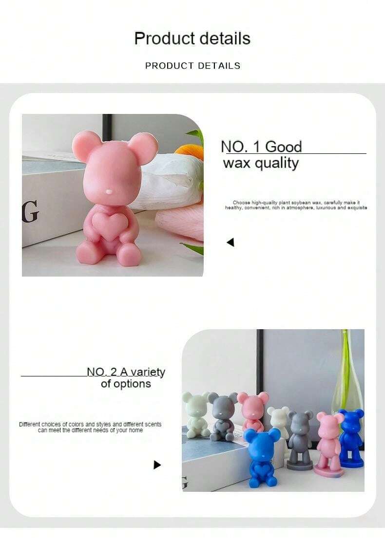 La taille de chaque moule varie - Veuillez vous référer à l'image pour les dimensions exactes. Chaque détail de la forme d'ours est soigneusement conçu et offre un confort optimal pour votre fabrication de bougies. Libérez votre créativité., Informations : 1., Avant la première utilisation, nettoyez le moule avec de l'eau pour enlever la poussière., 2., Évitez les flammes nues ou les sources de chaleur directes., 3., Ne pas tirer de force, ne pas cogner ou gratter avec des objets tranchants., 4., Ne stockez pas le moule longtemps sans protection pour éviter l'accumulation de poussière., 5., Après utilisation, nettoyer avec de l'eau, laisser sécher, stocker à plat et stocker dans un endroit frais. Avec notre moule en forme d'ours, vous pouvez fabriquer des bougies dans différents parfums et couleurs et les offrir comme cadeau d'anniversaire, de Noël, de fête des mères, de Saint-Valentin ou du Nouvel An. Versez vos ingrédients préférés, laissez-les durcir, puis retirez les bougies du moule. Création Bougie Animalière Maison XIAOSHUI Moule à Bougie En Forme D'ours En Forme D'ours Avec Moule à Bougie Animaux DIY Le matériau est épais, élastique et résiste à des températures allant de -40 à 220 °C. Cadeau parfait : ces moules animaux ne sont pas seulement adaptés aux bougies, mais aussi polyvalents pour la résine, le savon, les bombes de bain, les sculptures de glace, l'argile polymère et d'autres projets de bricolage. Moule à bougie en forme d'ours : vous recevrez 1 moule à bougie en silicone en forme d'ours. Facile à utiliser : pour fabriquer des bougies, vous pouvez ajouter des huiles essentielles, des fleurs, des peintures, des paillettes, des strass ou d'autres matériaux de remplissage dans le moule à bougie animale. Cadeau parfait : ces moules en forme d'ours ne sont pas seulement adaptés aux bougies, mais sont également polyvalents pour la résine, le savon, les bombes de bain, les sculptures de glace, l'argile polymère et d'autres projets de bricolage. Le moule en silicone en forme d'ours de poupée est doux et... Le moule en forme d'ours est doux et épais, facile à démouler et à nettoyer (lavage à la main). Ce moule en forme d'ours répond à vos besoins de bricolage. Le moule peut être utilisé en toute sécurité dans les micro-ondes, les fours, les réfrigérateurs et les lave-vaisselle. À propos de XIAOSHUI : Nous fabriquons des moules en silicone depuis des années et nous nous efforçons de fournir des produits de qualité supérieure et un excellent service à nos clients. Moule à bougie pour la création d’une bougie en forme d'ours avec une ruche. Le moule est fabriqué en silicone de haute qualité et garantit une longévité d’au moins 1000 réutilisations Moule à bougie - ours avec ruche Qualité alimentaire sûre : le moule en forme d'ours est fabriqué en silicone de qualité alimentaire.