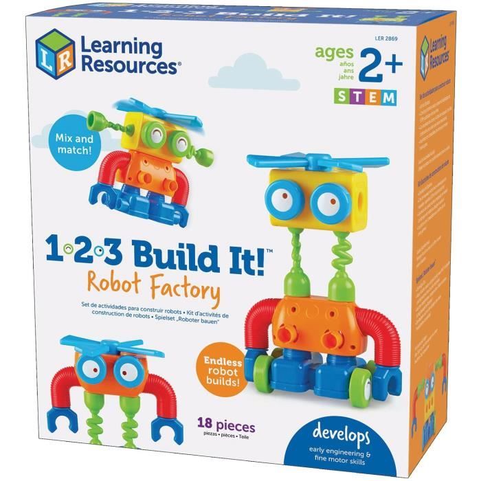 Jouet STEM Motricité Fine Enfants Learning Resources Fusée Bolt Buddies Design & Drill, Jeu De Constr Pour La Motricite Fine Amz B082vyb5qz Pièces Assemblage STEM Créativité -BA de la construction , À PARTIR DE 2 ANS. Dimensionnées juste pour les petites mains, les pièces en plastique volumineux de ce jouet à construire soi-même sont prêtes à aider les enfants à concevoir, à construire et à bricoler avec leur propre équipe de robots pendant les sessions de jeu ouvertes L'usine de robots B.A.-BA de la construction est également fournie avec un guide d'activités qui recommande des modèles pour aider les enfants à acquérir des capacités STEM fondamentales allant de l'esprit critique à l'ingénierie élémentaire et au suivi d'instructions Les pièces du jeu B., A. Comprend un guide et un emballage multilingues Jouet éducatif - AMOUNE - Hérisson Spike - Motricité fine - Multicolore Pièces faciles à manipuler pour aider les petites mains à développer leur motricité fine Description du produit B., A. -BA de la construction - Usine de robots de Learning Resources, les enfants vont construire leurs propres créations STEM tarabiscotées à l’aide des pièces à assembler. L’usine de robots B., A. Construisez des robots tout en hauteur avec des jambes vertes en tortillon, ajoutez quelques yeux pour les aider à voir ou encore une hélice qui tourne réellement ! Renforcement des aptitudes élémentaires d’ingénierie, d’esprit critique et autres capacités STEM Créez vos propres robots imaginaires avec ce jouet à construire soi-même. -BA de la construction - Usine de robots, jouet pour la motricité fine, jeu de construction de robots, à partir de 2 ans.