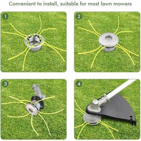 Spécification: Matière: aluminium et nylon Taille: Bobine de tête de fil en aluminium: 5 cm x 4,5 cm; Fils carrés : longueur: 27 cm, diamètre: 2,4 mm; Cales: 8 mm et 10 mm; Ligne de remplacement en nylon carré orange: longueur: 50 m, diamètre: 3 mm. 1-HDO001-Tête de coupe complète à 2 fils nylon P25 pour McCULLOCH Remarque: Veuillez autoriser un léger écart de mesure en raison de la mesure manuelle. Ligne de Remplacement en Nylon: un rouleau de lignes de coupe carrées de 50 m répond à vos besoins de remplacement de ligne. Convient aux prises de vue 8 et 10 mm. Tete De Débroussailleuse Universelle Aluminium Tête De Débroussailleuse Tête De Coupe Bobine Fils Avec 4 Fils (Jaune) Et Fil Nylon De Rechange 50 M (3,0 Mm, Orange, Carré), Pour Brosse Débroussailleuse Thermique Contenu de la livraison: 1 x bobine de tête de fil en aluminium 4 x fils carrés (27 cm x 2,4 mm ) 2 x cales 1 x clé hexagonale 1 rouleau x ligne de remplacement carrée en nylon (50 mètres x 3 mm) Clause de non-garantie En cours d'utilisation, essayez de vous assurer qu'il est s?r et que personne ne se trouve dans la zone de travail, Remarque: veuillez vérifier la taille des accessoires avant de les acheter. ce qui peut éliminer efficacement l'herbe et peut reconstituer la bobine à tout moment! Paquet de Valeur: Ce forfait comprend 1 pièce de bobine de tête de fil en aluminium, 4 pièces de fils carrés (27 cm/ jaune), 2 pièce de cales, 1 pièce de clé hexagonale et 1 rouleau de ligne de remplacement carrée en nylon (50 mètres x 3,0 mm / orange). Matériau Amélioré: Fabriqué en aluminium moulé sous pression de haute qualité. Tete debroussailleuse universelle 4 fils - Leroy Merlin Fils en nylon solides et résistants. Tête de Coupe-Herbe Universelle, Aluminium Fils Tête Coupe-Bordure...