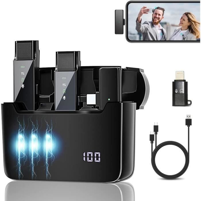 Appairage automatique : ce microphone cravate sans fil innovant est beaucoup plus facile à configurer. Micro Lavalier Réduction Bruit Type C IPhone Portée 20m SYNCO Microphone Lavalier Sans Fil G2 A1 2,4 GHz Microphones Sans Fil Micro Lavalier Réduction Bruit écran LED Avec sa fonction de couplage automatique, dès que vous allumez le microphone à clip et que vous le branchez dans votre appareil, le microphone se connecte automatiquement sans processus d'appariement manuel. Port de charge direct pour enregistrer et charger le téléphone. Design de clip de col léger et compact, vous ne le sentirez pas lorsqu'il est attaché au col., Facile à charger. 1 interface de type C. Aucun adaptateur, Bluetooth ou application nécessaire. Caractéristiques : Poids : 25 g. VERSATILITÉ COMPATIBILITÉ : Notre micro pour smartphone de la technologie 2,4 GHz pour une connectivité facile, un signal jusqu'à 20 mètres, une synchronisation automatique en temps réel et une synchronisation du son sans délai. Cela garantit une qualité sonore sans faille, où que vous soyez Microphone lavalier sans fil avec écran LED, système double micro et interface Type-C. Parfait pour enregistrer un son clair avec suppression du bruit, Bluetooth 5.3 et clip magnétique. Compatible avec les appareils APPLE, Samsung, Huawei pour les interviews, le streaming en direct, et plus encore Le microphone cravate sans fil offre un son clair et de haute qualité pour l'enregistrement vidéo, les interviews, les flux en direct, les podcasts et plus encore. Design léger, aspect simple et élégant, pas de charge lors du port, ne tire pas le col, petit, portable et beau. Cette fonction vous fait gagner du temps et assure un fonctionnement sans problème. Contenu : 2 microphones sans fil. Appareils compatibles : réalisez un enregistrement fluide avec notre microphone Lavalier sans fil Plug & Play 3 en 1 compatible avec une variété d'appareils, y compris USB-C et prise USB. Les microphones sans fil sont conçus pour le confort, éliminant ainsi le Bluetooth, les applications ou les connexions Internet. 2 balles en laine coupe-vent., 1 câble de charge., Conseils : 1., Si vous avez des questions sur notre mini microphone, n'hésitez pas à nous contacter L'affichage LED indique l'état de l'appareil en un coup d'œil et rend la configuration intuitive. Nouvelle réduction intelligente du bruit de conversion de fréquence, filtre de bruit. Behogan Lot de 2 microphones Lavalier sans fil avec écran LED, mini microphone avec réduction du bruit, compatible avec type C/iPhone/USB-C, mini microphone pour vlogging, enregistrement vidéo, TikTok, YouTube Couplage automatique. Port de charge : port de charge de type C. Remarque : certains téléphones Android peuvent nécessiter l'activation de la fonction OTG., Léger et portable. Microphone cravate sans fil (Remarque : certains téléphones Android nécessitent d'ouvrir les paramètres du téléphone et activer OTG) Il y a un port de charge USB-C sur le récepteur, prise en charge de l'enregistrement pendant la charge de votre téléphone portable, enregistrement et charge les deux, en direct sans électricité. Andoer Support Vidéo pour Téléphone Intelligent avec Microphone à Double Lumière LED et Support Antichoc pour Film Vlog Compatible avec 1 interface iOS de type C. Microphone Lavalier sans fil