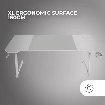HLFURNIEU LED Bureau Gaing 120 x 60 c, Bureau Gaer avec Plateau en Bureau Gaming Supports Casque Mars Gaming MGD-X160 Table Ergonomique XXL Tapis Casque Et Porte Gobelet 160x60cm Blanc Bureau Ordinateur Gestion Câbles ERGONOMIE AVANCÉE : Le bureau MGD-X160 intègre une surface ergonomique avec un design enveloppant et une finition en fibre de carbone résistante à l’eau, maximisant le confort et protégeant la surface contre les éclaboussures et l’usure quotidienne Description du produit Le bureau MGD-X160 est conçu pour offrir une expérience de jeu confortable et durable. Sa structure métallique robuste assure une stabilité absolue, tandis que les supports pour casque et boissons, ainsi que le système de gestion des câbles, maintiennent ton setup propre et organisé, améliorant à la fois la fonctionnalité et l’esthétique de ton espace de jeu. Achetez la bureau gaming Mars Gaming MGD-X160 Table Ergonomique XXL Tapis Casque et Porte-Boisson 160x60cm Noir au meilleur prix en ligne dans notre boutique. Offres et réductions sur les bureaux gaming Veuillez respecter les limites de poids recommandées. Wevalley bureau gaming led, 140 x 60cm grande bureau gamer avec un... SURFACE LARGE ET TAPIS DE SOURIS XXL : Avec une surface généreuse de 160x60 cm, le bureau gaming MGD-X160 offre tout l’espace nécessaire pour ton écran, ton clavier, et tes accessoires; De plus, le tapis de souris XXL inclus permet un glissement fluide, améliorant la précision de chaque mouvement Sa large surface ergonomique de 160x60 cm, combinée avec un tapis de souris XXL intégré, garantit un contrôle total dans chaque game.