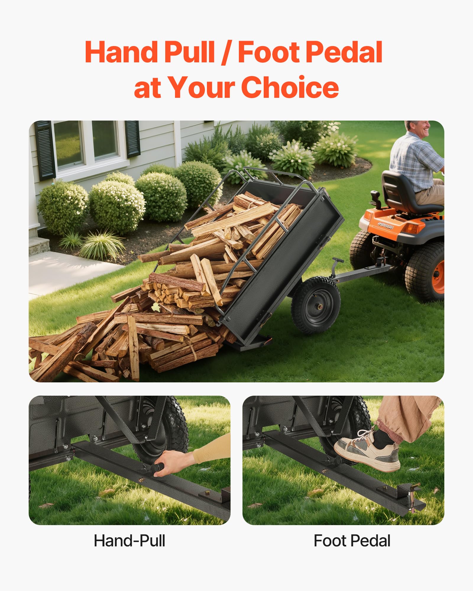 Remorque de grande capacité : Avec trois côtés renforcés, cette remorque pour tondeuse à gazon peut contenir 793 L de déchets de jardin, vous permettant de collecter plus de bois, de terre et de débris en une seule fois sans déversement fréquent Test De La Remorque à Benne Basculante VEVOR : Capacité 340 Kg Robuste Et Polyvalente Auto - Découvrez notre offre Remorque à Benne Basculante-VEVOR-793 L-Remorque de Tracteur Tondeuse à Gazon de Jardin en Acier-Capacité de Charge 800,6 kg. Livraison gratuite à partir de 25€* | Paiement sécurisé | 4x possible | Retour simple et rapide Deux options de vidage Cette remorque de chantier offre des modes de déchargement manuel et à pédale. Contenu du coffret 1 x remorque à benne basculante Le mode manuel est idéal pour les petits déchargements précis, tandis que le mode à pédale est idéal pour les déchargements rapides et en vrac, permettant ainsi de gagner du temps et de l'énergie pour les tâches plus importantes. Taille de la broche 0,47 po / 12 mm, compatible avec la plupart des véhicules. Les pneus gonflables, associés à un essieu renforcé thermolaqué Remorque utilitaire pour tondeuse à gazon tout-terrain (800,59 kg et 793 L) Cette remorque de jardin de 800,59 kg (1800 lb) convient aux tracteurs, VTT, tondeuses à gazon et plus encore. Remorque Tracteur Tondeuse Capacité 800kg Destockage Noël : VEVOR Remorque à Benne Basculante Tracteur Tondeuse Gazon Acier 793 L ... Pas Cher Remorque Voiture 500kg Les garde-corps en acier offrent une protection supplémentaire, empêchant les objets de tomber et améliorant la sécurité pendant le transport. Compatibilit universelle : Cette remorque de jardin est dote d'une goupille de 12 mm et de deux trous, ce qui la rend compatible avec divers quipements tels que les tracteurs, les VTT, les UTV et les tondeuses gazon Taille de la roue : 18 x 9,5 po / 45,72 x 24,13 cm Adapté aux terrains accidentés : Doté de pneus de 45,7 cm x 24,1 cm, ce chariot de jardin en acier offre une excellente traction sur l'herbe, la boue, le sable et le gravier. Les pneus de 45,72 cm assurent une conduite fluide sur l'herbe et la boue, pour le jardinage et le nettoyage. Capacité de poids : 1 800 lb / 800,59 kg Commande manuelle ou à pédale : Équipé de deux options de déchargement, manuelle ou à pédale, l'utilisateur peut choisir en fonction de la tâche. Aide au transport efficace : Contrairement à la plupart des remorques de à benne basculante, cette remorque pour VTT peut transporter jusqu'à 800,59 kg. Poids net : 148,81 lb / 67,5 kg Dotée d'un cadre en acier, d'un revêtement antirouille, de tiges de support renforcées et de pneus, elle offre une capacité de 800,59 kg et un espace de 793 L.