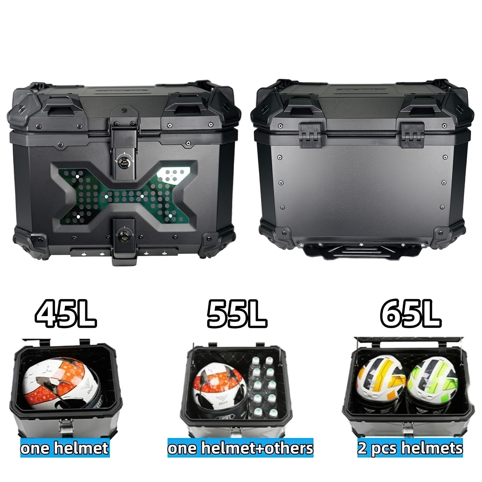 【Imperméable à l'eau et à la poussière anti - vol】 la boîte de casque de moto est conçue avec un évier étanche, une performance d'étanchéité fiable, imperméable à l'eau et à la poussière. 【Grande capacité de rangement】 la boîte de rangement pour moto a une capacité de rangement suffisante de 45l / 57L, une doublure intérieure amovible intégrée, un nettoyage facile et un effet amortisseur et amortisseur. Découvrez notre test complet du top case universel 100L en aluminium pour moto. Explorez ses caractéristiques de valise étanche et sa robustesse pour vos voyages Kono Valise Moyenne 67x44x27cm Valise Soute en ABS Légere Valise Rigide 4 roulettes Valise de... Équipé d'un verrou de sécurité antivol qui protège vos biens et vous permet de rouler en toute tranquillité. Top Case Moto Universel 55L, En Aluminium Antichoc Étanche Conception d'angle latéral renforcé, anti - chute n'est pas facile à déformer. Assure que le coffre de votre moto reste en bon état pendant de nombreuses années. Coffre Moto CcacHe 45L Top Case Pour Moto En Aluminium, Coffre Pour Casque Étanche Topcase Valise Pour Stockage Casque Grand Bagage, Avec Serrure De Sécurité (Color : A, Size : 45L Valise Moto Il peut fournir beaucoup d'espace et de protection pour vos casques, gants, effets personnels, etc. Matériel: ABS. Modèles applicables: universel.