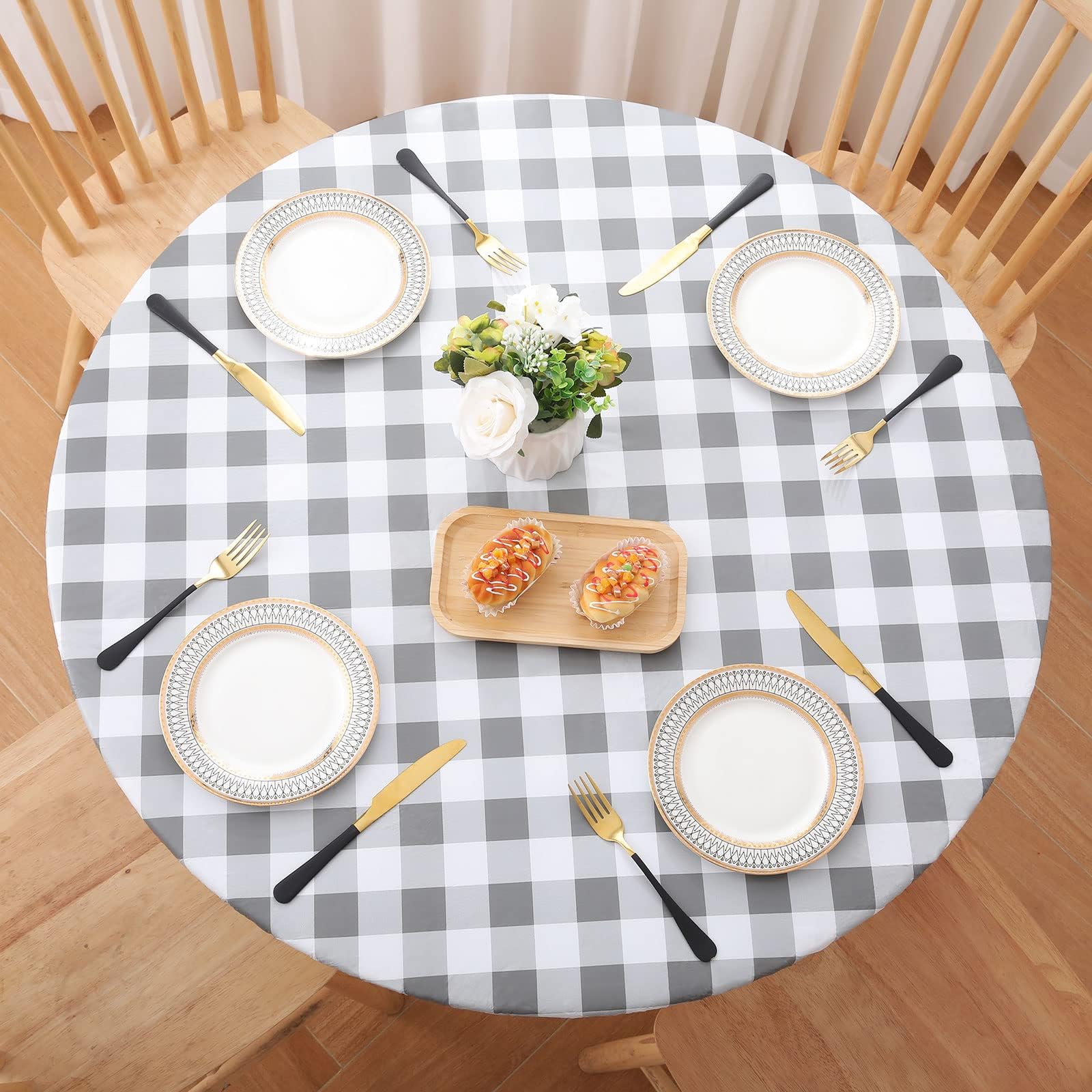 Notre nappe imperméable protège vos meubles contre les déversements, les rayures et les dommages causés par le soleil tout en ajoutant de l'élégance. Protection supérieure : la nappe résistante aux taches crée une barrière contre les taches de nourriture, les liquides renversés et l'usure quotidienne. Performance par tous les temps Performance par tous les temps : contrairement aux nappes rondes standard, notre matériau de qualité extérieure résiste à la pluie et au soleil. Idéal pour : housses de meubles de jardin, protection de table de terrasse, dîners, cafés et protection quotidienne des repas. ✔️ Utilisation polyvalente : excellent comme nappe de table de jardin, protection de terrasse ou nappe ronde élégante pour les dîners Nappe Ronde Imperméable élastique TropicalLife Nappe Ronde Ajustée Rose Avec Fermeture éclair Et Trou Nappe Polyester 300g/m² Ajustement sûr : les bords élastiques maintiennent cette housse de table ajustée en place même dans des conditions de jardin venteux. ✔️ Protection imperméable : notre nappe ronde est fabriquée en tissu polyester de qualité supérieure qui repousse les déversements et les rayons UV – Parfaite pour les nappes d'extérieur par temps imprévisible. ✔️ Ajustement parfait pour les tables rondes : l'ourlet élastique garantit que cette nappe extensible reste en place sur des nappes de salle à manger de 114,3 à 127 cm. Caractéristiques techniques : Matériau : 100 % polyester (poids 300 g/m²). Nappe Feuillage tropical, sur un fond blanc, ronde 180 cm, 100% polyester anti-taches | Picaflor Conseils d'entretien : lavable en machine à 30 °C, séchage sur fil. Nappe Ronde Élastique, 3D Marguerite Imprimer Nappes Bord Ajustable...