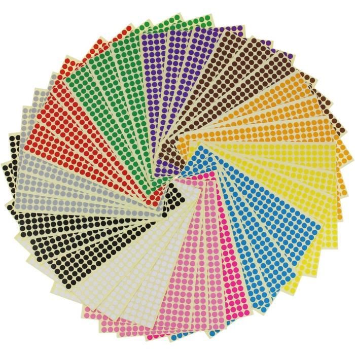 Un large éventail d'utilisations comme marquer le prix des marchandises, distinguer les documents, classifier les boîtes de rangement, etc. 6300Pcs Pastille Autocollante de Couleur, 6 Goettes Autocollantes Achetez liuchanghe 1650Pcs Gommettes Autocollantes Rondes, 10mm Couleur Autocollante - 10 Couleurs La quantité est suffisante pour l'utilisation quotidienne. Riche en quantité : Le forfait comprend 10 feuilles autocollantes rondes, chaque feuille 165 pièces gommettes, en total 1650 pièces gommettes, diamètre 10 mm. Riche en quantité : Le forfait comprend 10 feuilles autocollantes rondes, chaque feuille 165 pièces gommettes, en total 1650 pièces gommettes, diamètre 10 mm. La quantité est suffisante pour l'utilisation quotidienne. Les clients sont satisfaits de la qualité et du rapport... Il est facile à coller et à décoller, vous pouvez décoller les étiquettes facilement sans laisser de résidus lorsque vous n'en avez plus besoin. Matériaux de Haute Qualité: Ces gommettes autocollantes sont fabriqués à partir de papier de haute qualité avec une excellente adhérence et peuvent être fixés de manière stable sur la plupart des surfaces lisses. Gommettes Enfants 2 Ans 1320 Pcs Pastille Autocollante De Couleur 8 Feuilles Goettes Gommettes Rondes