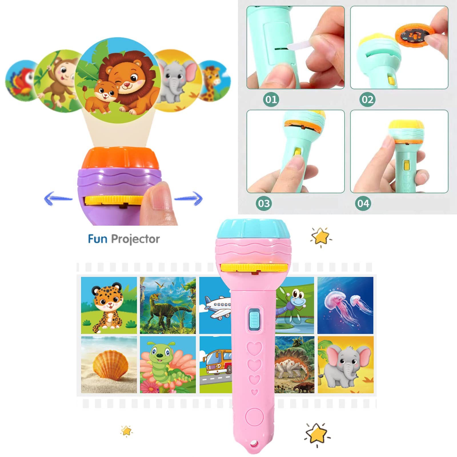 【Cadeau intime】 La conception de la lumière douce la nuit soulage la peur, améliore l’interaction parent-enfant et aide au développement cognitif, ce qui en fait un bon choix pour les enfants. 【Projection multi-thèmes】 Y compris une lampe de poche crémeuse, 23 diapositives (104 motifs), couvrant les dinosaures, les lettres et d’autres thèmes, divertissant et éducatif. [Opération simple] push-pull pour changer de film, faire pivoter l’objectif pour faire la mise au point et ajuster la distance et la position de projection, afin que les enfants puissent facilement commencer. Projecteur Histoire Enfants Lampe Torche Et Projecteur Animaux Jouet Lampe De Poche Projecteur Mini Projecteur Enfant Achetez HOTUT Lampe Torche et Projecteur Animaux, Jouet Lampe de Poche Projecteur Histoire, Mini Projecteur Histoire Enfant avec 10 Disques 80 Images, Jouet Éducatif pour Garçons Et Filles-Vert Inspirez les enfants à s'amuser et à apprendre tout en jouant: Le projecteur d'images, qui regorge de designs intéressants et d'images modifiables mignonnes, peut aider les enfants à continuer à profiter du plaisir de leurs mains et du bout de leurs doigts, à développer leur imagination, à enrichir leurs connaissances et à élargir... Nos top 10 des Lampe Torche Enfant Projecteur en France