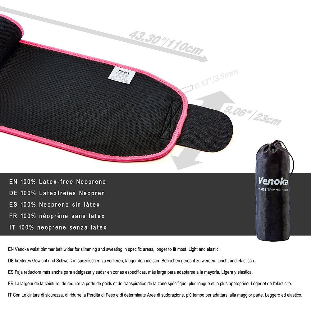 Bande reductrice Venoka en néoprène conçue pour amplifier la transpiration et perdre du poids. Gardez une belle silhouette et stylisez votre ceinture. Réduit et modèle toute la zone du ventre, de la taille et des hanches. La bande la plus grande peut s'étendre jusqu'à 140 cm et la plus courte jusqu'à 127 cm. Ceinture de Sudation Minceur Brûle graisses VASLANDA Elle est fabriquée en néoprène élastique à isolation thermique de haute qualité pour une usure plus lente., Avertissement : 1., Veuillez ne pas utiliser ce produit si vous avez une plaie ouverte ou si vous êtes sujet à la dermatite ou allergique au néoprène. Retient la chaleur corporelle pour éliminer l'excès d'eau. Épaisseur : 0,35 cmLa bande néoprène réglable avec velcro assure un ajustement confortable. Bande de néoprène premium, idéal pour marcher, courir, et s'entraîner et pour n'importe quel sport pour homme et femme. Idéal comme bande amincissante., ! Avantages : La bande réductrice vous aide à éliminer l'excès d'eau et les toxines, brûler la graisse et améliorer la qualité de votre peau. Ne pas utiliser pendant plus de 2 à 3 heures. La ceinture vous accompagne pendant les activités, l'échauffement des muscles réduit la fatigue après l'effort, élimine la pression des muscles de votre dos. Légère et respirante. Ceinture Lombaire Homme Ceinture Ventre Plat Femme Ceintures Homme Ceinture De Sudation Ceinture Ajustable Homme Femme La ceinture mesure 122 cm de longueur maximim et 110 cm minimum. Mousse haute densité antidérapante pour éviter de glisser. Soutien du dos et des muscles abdominaux. La ceinture abdominale permet la compression du ventre et un soutien lombaire pour maintenir votre dos. Bande en néoprène réglable, plus large pour mincir et transpirer sur des zones spécifiques et plus longue pour s'adapter à la plupart des personnes. Réglable avec Velcro. La ceinture réductrice vous aidera à brûler la graisse et à améliorer la qualité de votre peau. Quand vous faites du sport, vous pouvez porter cette bande sportive pour augmenter la transpiration., Toucher agréable. La ceinture abdominale de sudation permet une compression abdominale et un support lombaire pour soutenir votre dos, aide à mincir et à garder une belle silhouette Matériau :Mousse : 100 % néoprène, tissu extérieur : 100 % polyester. Dans cet article, nous vous présentons la ceinture de sudation, un accessoire particulièrement unique qui vous aider à fondre votre graisse abdominale indésirable comme neige au soleil tout en vous permettant de poursuivre votre journée comme d'habitude