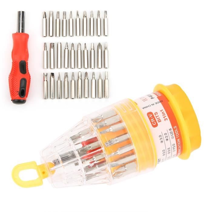32 en 1 Petit Ensemble de Tournevis Électronique Réparation Outil Kit Tournevis De Précision 32 En 1 – Multi-Tournevis Compact Pour Électronique, Téléphones Ce kit professionnel de tournevis de précision 32 en 1 est conçu pour les réparations électroniques délicates. Il comprend 30 embouts magnétiques interchangeables en acier CRV traité à une dureté de 60HRC, couvrant les formats Phillips, Plat, Torx, Hexagonal et Triangle La baïonnette interne est fixe et difficile à endommager.Caractéristiques : Démontable, multifonction, antidéflagrant, antidérapantLa poignée en alliage aéronautique est légère et résistante.Outil professionnel, il vous offre des fonctionnalités ultra-performantes.Convient à la plupart des produits numériques, ordinateurs, téléphones portables, appareils photo, lunettes et montres