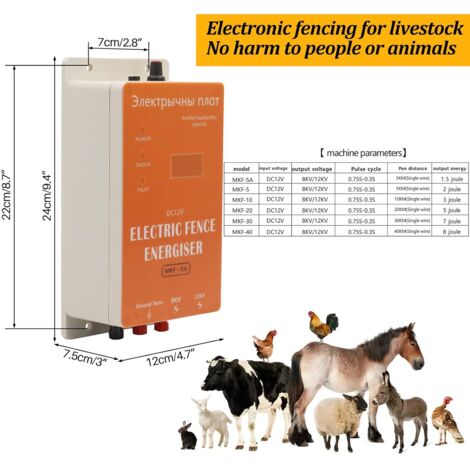 Livré avec 1 rouleau de fil de clôture électronique de 200 m et un boîtier étanche. 【Facile à installer et à utiliser】 : ce kit de clôture électronique est livré en standard avec 2 bornes, dont 1 est une borne de terre de clôture pour la connexion à un système de mise à la terre indépendant, et l'autre est une borne de sortie de clôture pour la connexion à une clôture. Fournisseur depuis 2009 de matériel de clôture électrique auprès de particuliers, professionnels, agriculteurs, éleveurs d'animaux en tout genre. Achetez en ligne votre matériel de clôture électrique et clôturez vos pâtures, vos prés, vos élevages et autres espaces dédiés à vos animaux Ce chargeur de clôture électronique est livré avec une puissante sortie de 1,5-3J pour garantir une alimentation efficace et fiable à votre clôture 【 DANS LA BOÎTE 】 1 * chargeur de clôture électronique., 1 * boîte étanche. Isolateur Contrôleur De Clôture Électrique Pour Animaux - Électrificateur 10KV Pour Ferme, Bétail, Chevaux - Alimentation 12V Ou 110-240V - Protection Contre Les Prédateurs Cloture Electrique 1 câble de clôture électronique de 200 m, 1 adaptateur secteur., 1 * panneau d'avertissement. 1 cordon d'alimentation pour batterie 12 V, 1 câble d'entrée/sortie., 1 * manuel d'utilisation. Cloture Electrique Pour Chien 5 KM Clu00f4Ture U00e9Lectrique , Clu00f4Ture U00e9Lectrique Solaire Pour Animaux Cloture Electrique Pour Animaux Elevage Danimaux Electrique Controleur Vache Moutons 3 Modes Dalimentationblue 82507291 Sterilisateur Bocaux Consommation d'énergie : 2 W (haute puissance, faible efficacité énergétique). 【Plage de contrôle efficace à haute production d'énergie】 : l'excitateur de clôture est conçu pour les clôtures électroniques, distance de travail jusqu'à 15 km est compatible avec la plupart des conducteurs sous tension. Ce chargeur de clôture électronique est livré avec une puissante sortie de 1,5-3J pour garantir une alimentation efficace et fiable à votre clôture.