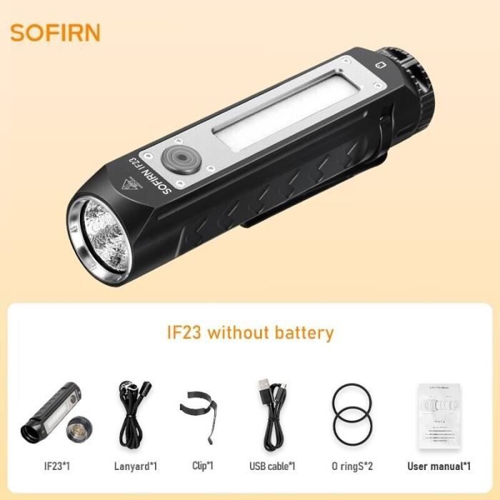 Sofirn SR23 Lampe de poche rechargeable à DEL lumineuse avec lumière UV, 3300 lumens haute luminosité, lumière de poche double source pour la maison, l'extérieur, le travail, détection des taches d'urine d'animaux domestiques Modes d’éclairage variés – En mode lumière blanche, elle offre un réglage progressif (5~3300LM), mode clair de lune, stroboscope, SOS et mode verrouillage. Lampe Torche Puissante Sofirn SP31V3 Lampe Torche Tactique 2000 Lumens 269 Mètres Rechargeable LED Lampe De Poche Avec Torche Type-C Reglage Continu 1 3300LM 2 Gradation en continu 3 Scénario À la luminosité minimale, l’autonomie maximale peut atteindre 290 heures. Design Utile – Équipée d’un clip bidirectionnel et d’un aimant arrière, vous pouvez fixer ou accrocher la lampe torche où vous en avez besoin. Lampe De Travail Led Lampe De Travail Extérieure Portable Avec Port De... U2S Uv Lampe De Poche 365Nm Avec Zwb2 Filtrer, Rechargeable Noir 1 IPX8 2 Mode de verrouillage En lumière UV, deux niveaux sont disponibles : bas (0,8W) et haut (3W). 1 UV lampe 2 Deux vitesses UV 3 Scénario