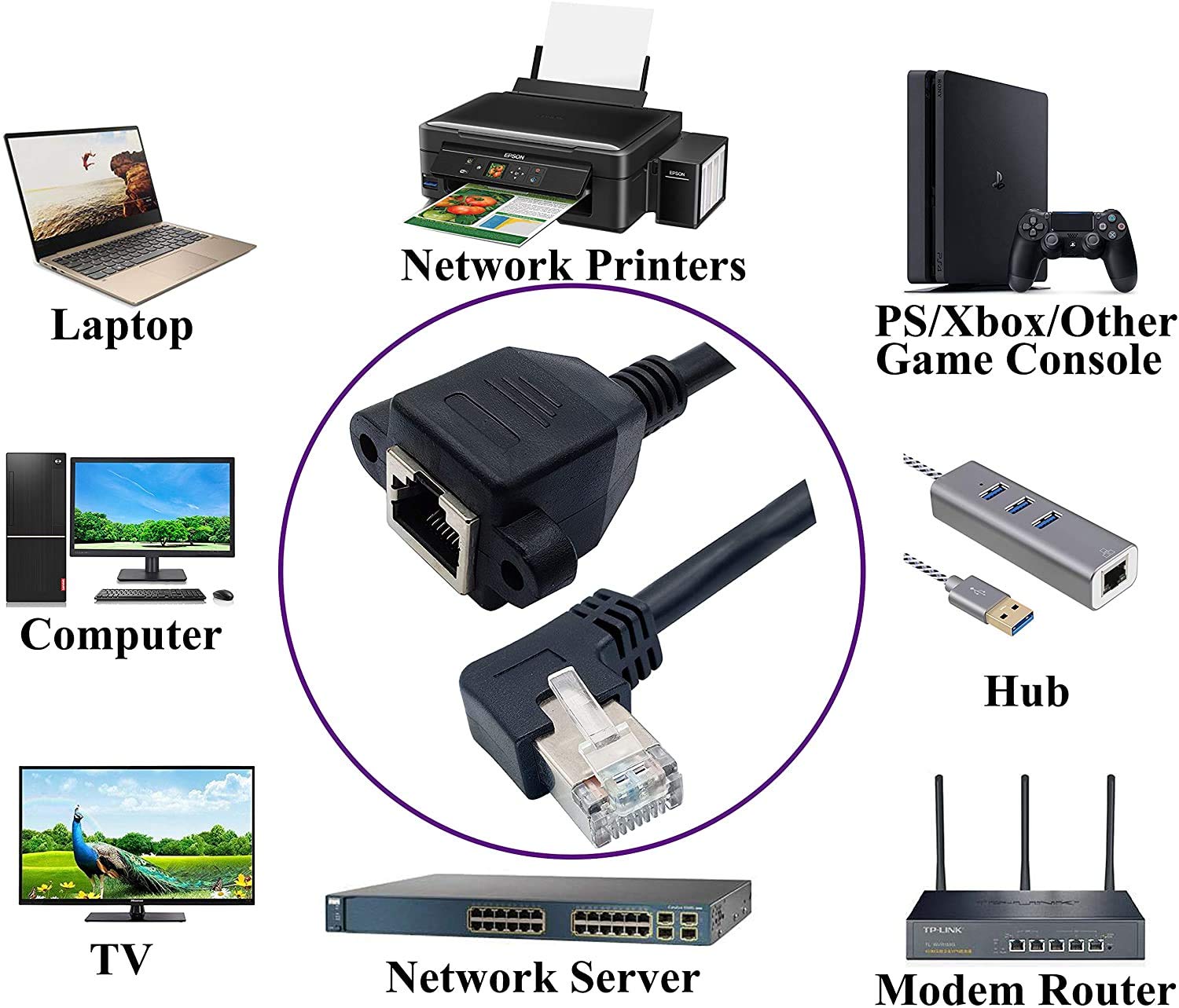Adaptateur Ethernet 90 degrés Duttek, mâle RJ45 incliné vers le bas L'adaptateur Ethernet 90 degrés étend votre connexion Ethernet existante avec ce câble de raccordement à 90 degrés au lieu de fixer un adaptateur ou de plier un câble Ethernet droit lorsque vous êtes dans des espaces restreints. Duttek Lot de 2 adaptateurs Ethernet à 90 degrés, coudés vers le bas, RJ45 mâle à femelle, connecteur de raccordement réseau blindé, compatibles avec le commutateur, le modem, le routeur, le PC L'adaptateur d'extension Ethernet haute vitesse prend en charge la bande passante jusqu'à 100 MHz et la transmission de données à des vitesses de 100 Mbps, se connecte aux segments LAN / Wan et aux équipements réseau à des vitesses maximales élevées., Compatible avec: 1., Compatible avec les câbles Ethernet UTP, FTP et STP CAT 5., Compatible avec les câbles de catégorie 5, 5e; Remarque:! L'extension de câble Ethernet est parfaite pour étendre votre connexion Ethernet existante pour atteindre un routeur ou un appareil vidéo vapeur, et protéger le port réseau de l'ordinateur contre le branchement et le débranchement constants. Évitez le branchement et le débranchement continus des ports réseau, empêche le câble Ethernet de se plier et de causer des dommages. Coax To Duttek Lot De 2 Adaptateurs Ethernet à 90 Degrés, RJ45 Mâle Vers Femelle, Connecteur De Raccordement Réseau Blindé, Compatible Avec Commutateur, Modem, Routeur, PC, Imprimante Réseau, PS3, Etc Degree Adapter L'adaptateur Ethernet à 90 degrés a une large gamme de compatibilité, qui peut connecter un PC, des serveurs informatiques, des routeurs, des imprimantes, des boîtes de commutation, des lecteurs multimédia réseau, une XBox, un NAS, des téléphones VoIP, des appareils PoE, PS2, PS3, Hub, DSL, etc. Rallonge Ethernet RJ45 avec contact plaqué or, assure un transfert de signal haute vitesse et efficace. Design compact incliné vers le bas et forme compacte, ce qui peut économiser de l'espace. Connecteur CAT 5 à 90 degrés. Câble D'Extension Réseau Rj45, Angle De 90 Degrés Mâle Vers Femelle Lan Ethernet Cat 5E, Noir (1 Peut être utilisé pour connecter un câble Ethernet UTP, FTP et STP Cat 5, également rétrocompatible avec les câbles Cat 5, 5e. Cablecc Câble Ethernet RJ45 ultra fin Cat6 coudé vers le bas 25 cm UTP...