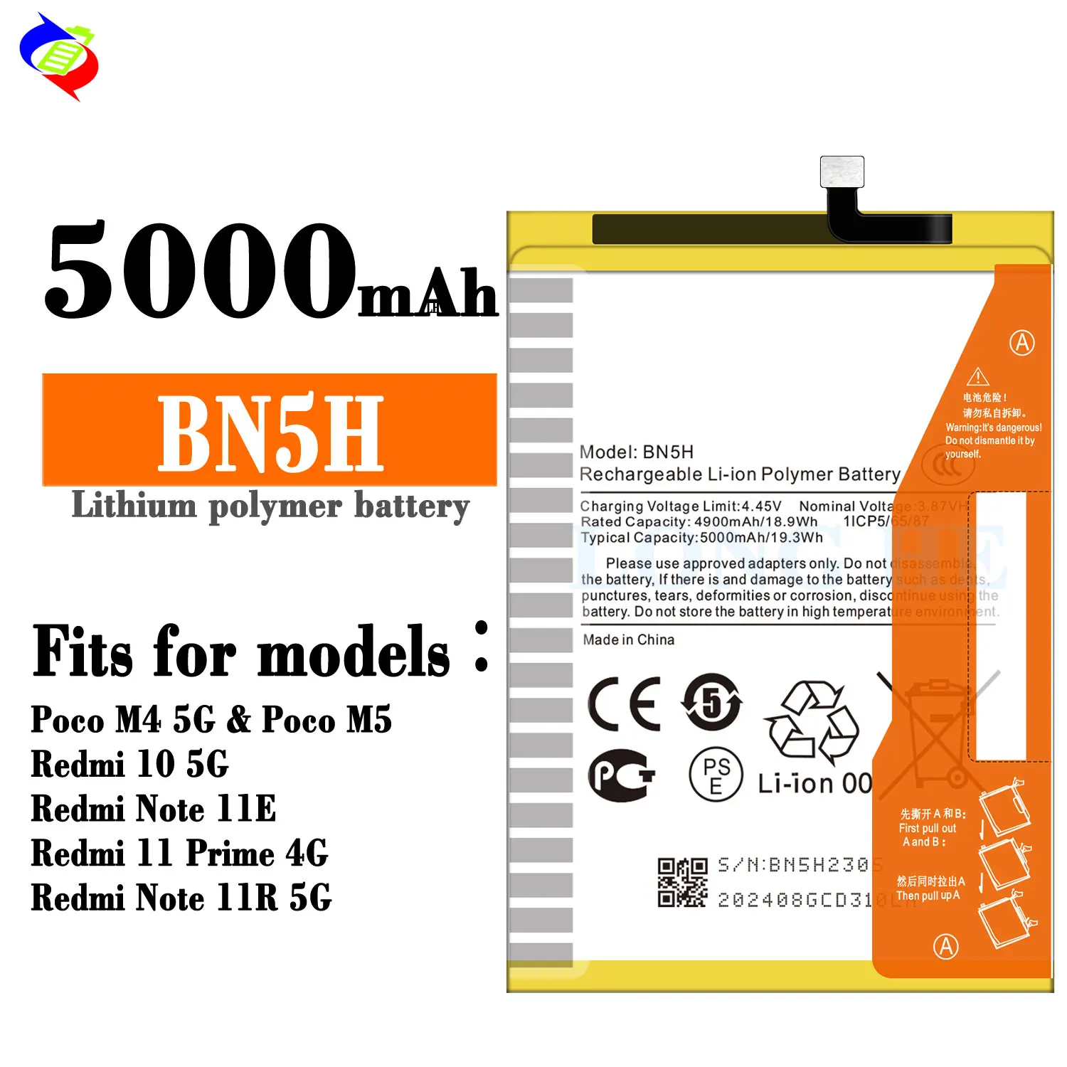 Batterie Haute Qualité Sécurité Duotipa Batería De Repuesto BN5H 4900 MAh Compatible Con Mi Poco Batterie Rechange Smartphone Kit Outils Avant l'installation, veuillez consulter le tutoriel vidéo YouTube Rebaja! POCO M4 5G 64GB a 93€ y 128GB a 117 Batterie de téléphone rechargeable de capacité d'origine BN5H pour MI POCO M4 5G 5000mAh 3.87V ; Lieu d'origine. Chine ; Couleur. noir ; État des produits. Stock Vous pouvez regarder des vidéos tutoriels Youtube et installer la batterie vous-même, mais nous vous recommandons de la faire installer par un professionnel pour éviter d'endommager l'appareil. Si vous avez des questions sur nos produits, veuillez nous envoyer un message, nous vous répondrons dans les plus brefs délais, merci de votre patience Batterie Battery Akku BN5H Pour Xiaomi Poco M4 5G / Poco M5 Batteries neuves : les batteries sont 100 % neuves et ont été testées en usine après trois à quatre cycles complets de charge/décharge pour des performances optimales pour résoudre les problèmes de performance Batterie Duotipa parfaitement compatible avec la batterie d'origine de votre Poco M4 5G/Poco M5/Redmi Note 11E, batterie neuve et de haute qualité, sûre et durable, résolvez vos problèmes de puissance. Capacité de tension : 4900 mAh/18,9 Wh,3,87 V. Chaque batterie est testée avant l'installation et dispose d'une protection intégrée contre la surchauffe, la surtension et les courts-circuits pour garantir la qualité., 5., Il n'y a pas de manuel d'installation pour la batterie. Paquet : 1 x batterie + kit d'outils. Compatible avec : Xiaomi Poco M4 5G 22041219PG, Poco M5 22071219CG, Redmi Note 11E 22041219C, modèle de batterie : BN5H, veuillez confirmer votre type de batterie avant l'achat Nos batteries offrent une garantie de six mois, une protection après-vente, bienvenue à acheter. Détails du produit : Modèle de batterie : BN5H.