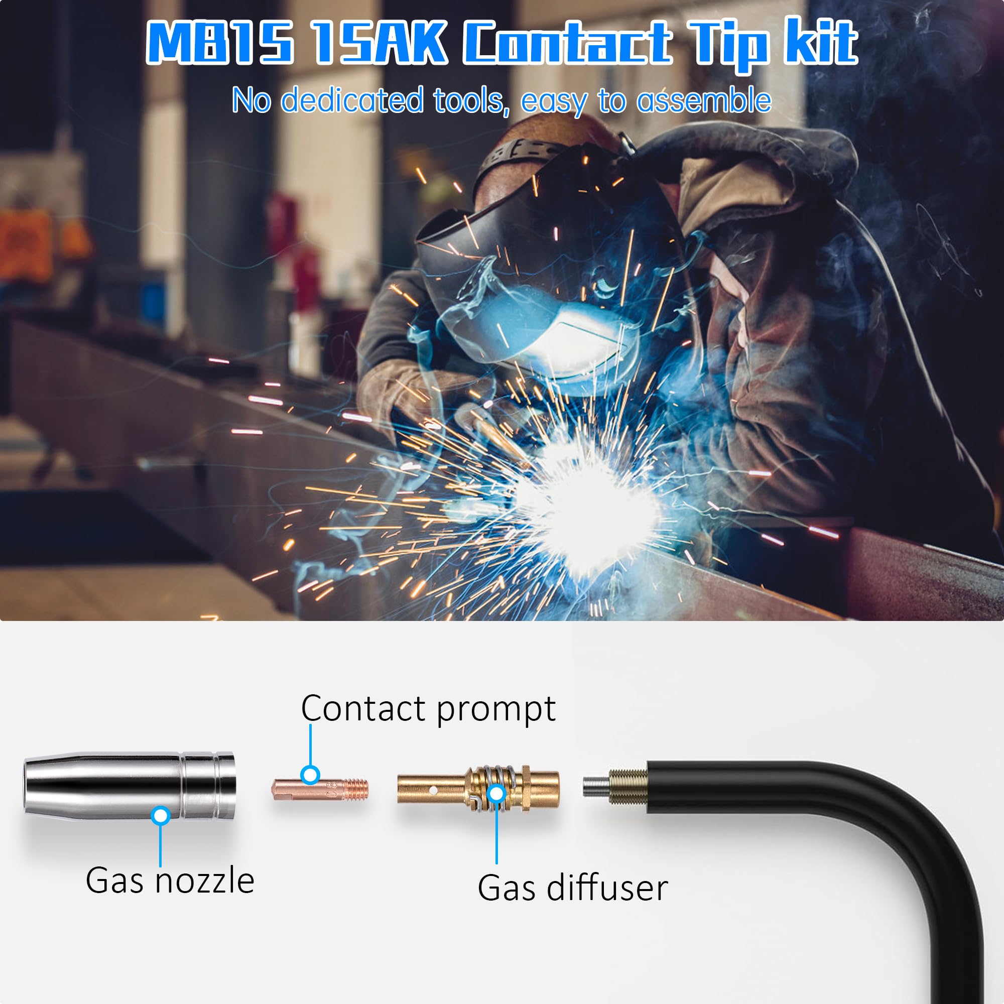 Poste a souder,Rouleau à Double pression en Silicone, résistant aux Lot 5 Buses Chalumeau Soudure Tablier De Soudage En Cuir Bleu - EJ.LIFE - Résistant Aux Hautes Buses De Soudage Mig Consommables de soudage : souvent utilisé dans le fonctionnement de soudage du pistolet de soudure à blindage au gaz CO2, peut remplacer directement l'ancienne buse ou cassée. Diamètre extérieur inférieur : environ 23 mm. Contenu : 5 buses pour pistolet à souder Fabriqué en laiton : ces gobelets coniques sont fabriqués en laiton, qui est résistant aux hautes températures et à la rouille. Forte compatibilité : peut être utilisé pour les chalumeaux de soudage MIG MAG 25AK, adapté pour Rilon, Riland, Jasic, Mitech, Longetivity, Berlan, etc Fabriqué en laiton : ces gobelets coniques sont fabriqués en laiton, qui est résistant aux hautes températures et à la rouille. Lot de 20 embouts de contact MB15 15AK en cuivre de haute qualité pour mieux dureté et résistance par rapport aux embouts de soudage ordinaires. * Offrez différentes tailles d'embouts de soudage : 0,6 mm / 0,8 mm / 0,9 mm / 1,0 mm / 1,2 mm Tailles standard : la longueur totale de la buse est de 57 mm, avec un diamètre standard, ce qui est facile à installer et à remplacer. Longueur totale : environ 57 mm.