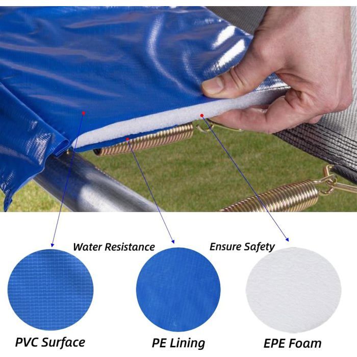 Rangement compact pratique : Grâce à sa conception pliable, ce store pour trampoline se range facilement dans un sac ou un coffre. Le tissu d'ombrage anti-UV offre une protection efficace contre les rayons UV, tandis que la construction résistante à la déchirure garantit une durabilité pour les activités sportives en extérieur. Gestion de l'évacuation des eaux pluviales pour un toit-terrasse Couverture de parapluie Housses de pluie jardin à la maison ou... Il conserve sa position initiale même lors de vents modérés pour une protection solaire continue. KASMOLE Trampolines - Comparer les prix et offres pour Confort et Jeu: Apporte une zone ombragée sur le trampoline, diminuant l'exposition à la chaleur et favorisant une expérience de saut rafraîchissante, parfaite pour les journées ensoleillées ou les climats chauds. Protection durable contre pluie et soleil : Conçu pour les trampolines 6 ou 8 pôles, ce couvre-trampoline temps protège contre la pluie et les UV, une utilisation prolongée et une meilleure adaptabilité à différentes configurations Protection Pluie Soleil Trampoline Housse De Trampoline - Canopée Pare-Soleil Pour Trampoline | Bache Anti-UV Pliable Et Impermeable Pour Jardin Terrasse Et Arriere-Cour Housse Jardin Terrasse Sport Spécification: Nom du produit: Couverture de la teinte de trampoline Matériel: PP Convient pour: trampolines à 6 pôles et 8 pôles 6 pieds: 160g, adapté à une utilisation sur un trampoline avec un diamètre de 6 pieds / 1,83 mètres 8 pieds: 270g, adapté à une utilisation sur un trampoline avec un diamètre de 8 pieds / 2,44 mètres 10 pieds: 460g, adapté à une utilisation sur un trampoline avec un diamètre de 10 pieds / 3,06 mètres 12 pieds: 600g, adapté aux trampolines avec un diamètre de 12 pieds / 3,66 mètres 14 pieds: 800g, adapté aux trampolines avec un diamètre de 14 pieds / 4,27 mètres Liste de colisage: 1 x couvercle de nuance de trampoline Note: En raison de différents paramètres d'éclairage et d'écran, les couleurs de l'élément peuvent varier légèrement des images. Zone Ombragée Respirante Offre un espace de saut confortable et ombragé qui minimise l'exposition solaire et la chaleur durant les beaux jours, augmentant significativement le plaisir du jeu. Conçue pour répondre à des besoins variés en plein air, cette couverture d'ombrage pour trampoline offre une fonctionnalité étanche pour vous garder au sec lors de changements météorologiques inattendus.