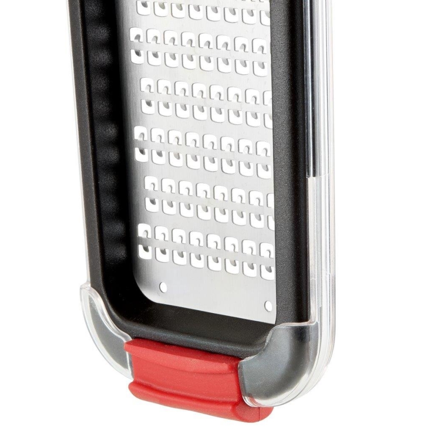 Plein d'arôme : les lames en acier inoxydable spécialement gravées sont particulièrement tranchantes et coupent proprement les aliments - au lieu de les écraser ou de les déchiqueter Râpe à main pour la production facile et rapide de fromage râpé grossièrement, adaptée au fromage et aux fruits et légumes à pâte dure tels que les pommes, les pommes de terre et les carottes Prise optimale sur les surfaces lisses grâce au pied antidérapant, à la poignée arrondie soft-touch avec oeillet de suspension Râpe universelle Westmark en acier inoxydable Facile à nettoyer, lavable au lave-vaisselle, dimensions étroites pour un rangement peu encombrant sur le mur ou dans le tiroir de la cuisine, protège-lame inclus, protège-doigts vendu séparément Maison - Découvrez notre offre Râpe, Grosse, Acier Inoxydable-Plastique, Technicus-Square, Noir-Argenté, 14142270 [u325]. Livraison gratuite à partir de 25€* | Paiement sécurisé | 4x possible | Retour simple et rapide Râpe Lavable Lave-vaisselle Westmark Râpe à Gros Grains, Lames Exceptionnellement Tranchantes Râpe à Fromage Une râpe à trous moyens : pour réaliser des gros copeaux pour décorer vos plats. - Une lame en acier inox : pour découper plus facilement vos fruits et légumes. La râpe dispose d'une large poignée vous permettant une prise en main sécurisée et confortable lors de son utilisation