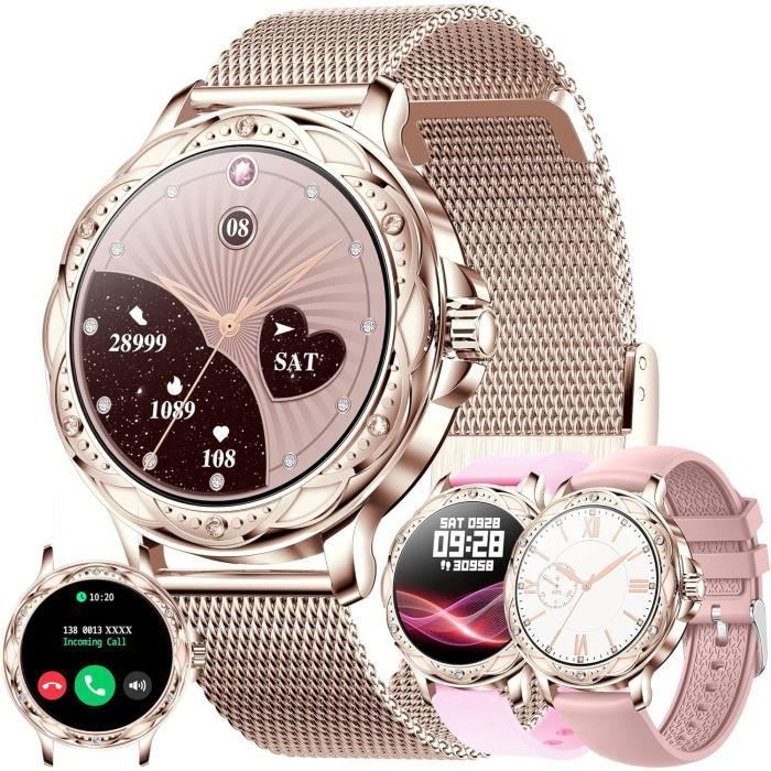 Montre podometre femme enregistre avec précision vos données d'activité (pas, durée, distance, calories, etc. Cette montre intelligente femme est livrée avec quatre bracelets haut de gamme : le bracelet en acier inoxydable rose doré offre une élégance raffinée, tandis que les bracelets en silicone et tissé allient confort et style sportif, s'adaptant à toutes les occasions. Appels Bluetooth et notifications intelligentes : Une fois connectée via Bluetooth à votre téléphone Android 5., 0+ ou iOS 8., 0+, cette montre intelligente permet de passer et recevoir des appels. Garantie étendue et service client premium : Nous offrons 2 ans de garantie et un support client 24h/24., Le coffret comprend le boîtier de montre, 4 bracelets multifonctions haut de gamme, un manuel d'utilisation et un câble de charge magnétique. Des fonctions enrichies : météo, réveil, contrôle musical, recherche du téléphone, déclencheur photo à distance, chronomètre, etc. Apple Watch Colesma Montre Connectée Femme Avec Appel Bluetooth,1.32" Diamond Bracelet Montre Connectée Or Rose Surveillance santé 24h/24 : Dotée d'une technologie de capteurs optiques avancés et d'IA, cette montre connectée tension artérielle avec précision et en continu votre fréquence cardiaque, votre tension artérielle, votre saturation en oxygène (SpO2), et analyse la qualité de votre sommeil (sommeil profond, léger et phases d'éveil). font de votre montre un véritable assistant connecté à votre poignet. (Impossible d'envoyer le message) Autonomie longue durée pour une vie plus intelligente : Équipée d'une batterie haute capacité de 300mAh, cette montre offre jusqu'à 7 jours d'autonomie (variable selon l'usage) ou 30 jours en veille. Montre Connectée Pour Ados GaWear | Boutique KT 1 Suivi de la santé 2 Suivi du sommeil 3 Santé des femmes 120+ modes sport et étanchéité IP68 : Cette montre intelligente prend en charge plus de 120 modes sportifs comme la course, le yoga, le vélo en extérieur, la randonnée, le tennis, etc. Elle intègre également des fonctions spécifiques : suivi du cycle menstruel, rappel d'hydratation, alerte sédentarité et exercices de respiration, vous aidant à adopter de meilleures habitudes. De plus, la montre connectée une assistante vocale IA pour plus de commodité. Efolen Montre Connectée Femme avec Appel Bluetooth, 1.27" HD Smartwatch Ronde Santé Au Féminin, 120 Modes Sportifs Sommeil équence Cardiaque SpO2 IP68 Podometre Android iOS Argent Colesma Montre connectée pour Femme, 1,43 AMOLED Montre Fitness Smart Toutefois, son utilisation n'est pas recommandée dans l'eau chaude ou l'eau de mer.