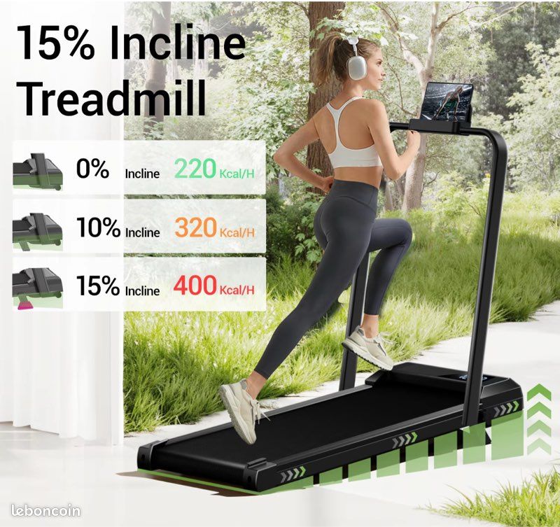 15% Inclinable] : Ce tapis de course inclinable est équipé d'une inclinaison réglable à 3 niveaux (0%, 10% et 15%) et prend en charge 6 modes d'entraînement. À une inclinaison de 15 %, il permet de brûler 420 calories par heure, pour un entraînement plus efficace 【Amorti multicouche】 : ce tapis de marche electrique est fabriqué avec 7 matériaux professionnels, offrant une meilleure adhérence antidérapante. Walking Pad UMAY Tapis Course Pliable Inclinable 15% Avis Test Complet Tapis Marche 1 Rouleau mobile 2 Restez silencieux., 3 Pliable 【Pliable et peu encombrant】 : ce treadmill home se plie rapidement. Son poids de 17 kg et ses deux roulettes facilitent son levage et son déplacement. Tampons de marche et tapis roulants de conception portables et pliables. Parfait pour les petits espaces - la famille d'encouragement pour rester active ensemble. Élevez votre forme physique avec nos tapis roulants inclinés pour un entraînement plus efficace UMAY FITNESS® - tapis roulants portables et produits de L'écran LCD affiche en temps réel la vitesse, la distance, les calories brûlées et le temps. De plus, le châssis intègre plusieurs amortisseurs multicouches pour réduire efficacement le risque de blessures articulaires pendant l'entraînement. 【15% Inclinable】 : Ce tapis de course inclinable est équipé d'une inclinaison réglable à 3 niveaux (0%, 10% et 15%) et prend en charge 6 modes d'entraînement.