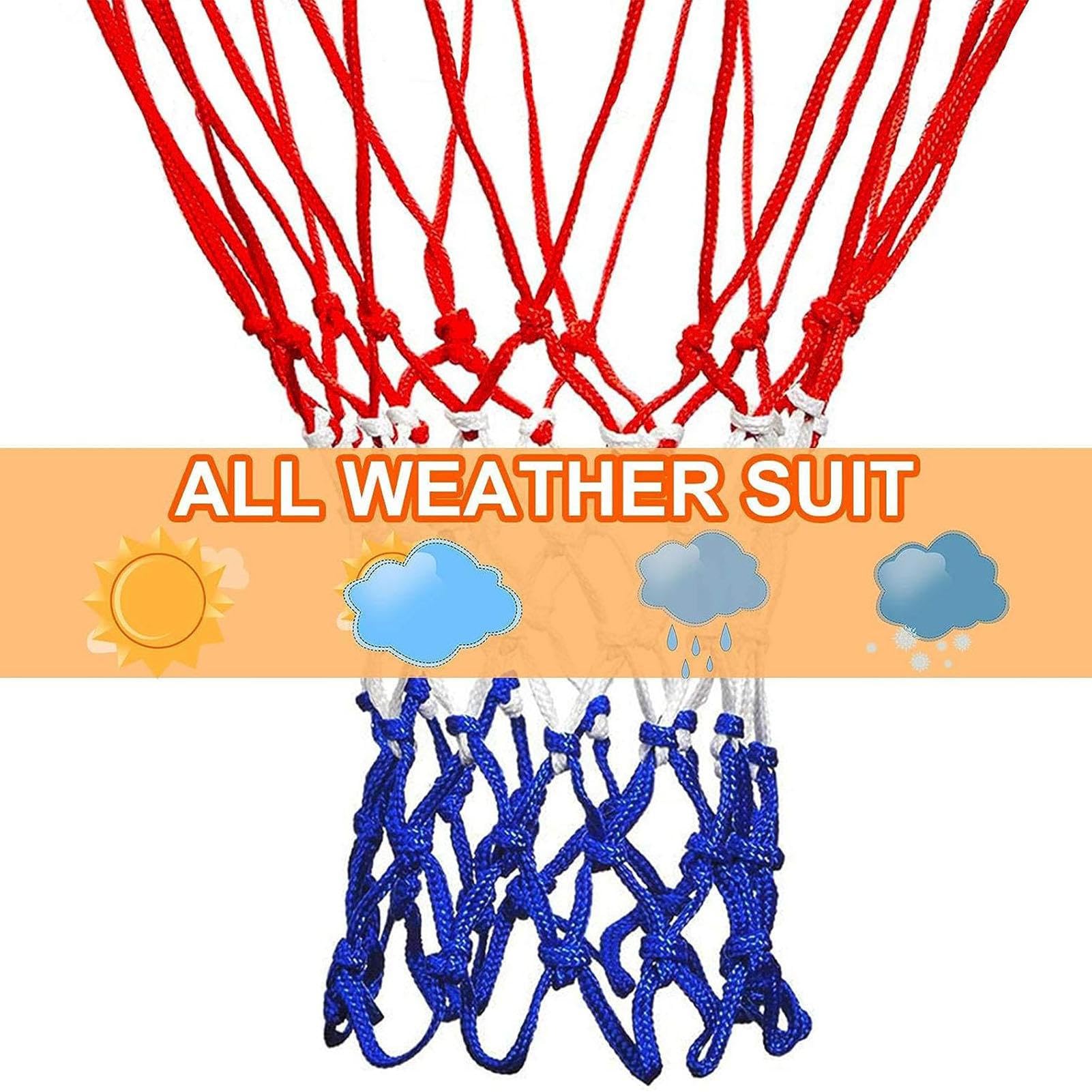 Filet Polyester 12 Boucles Filet De Basket-ball De Rechange Robuste, 12 Boucles, En Polyester Filet Panier Basket Il est adapté à toutes les conditions météorologiques et promet une longue durée de vie, même en cas d'utilisation intensive. Durable : Fabriqués en polyester, nos filets sont idéaux pour les paniers de basket intérieurs et extérieurs. Ils sont conçus pour résister à toutes les conditions météorologiques et aux manipulations répétées liées à une utilisation régulière Lot de 4 filets de basket super colorés ! En polyester résistant, longueur 53-55 cm avec 12 boucles pour s'adapter à la plupart des paniers standard Idéal pour les écoles, les clubs sportifs ou un usage domestique, ce filet est le choix parfait pour tous les amateurs de basket-ball qui apprécient la qualité et la durabilité. Qualité du filet améliorée pour plus de sécurité : avec un poids de 113 g et une corde plus épaisse, ce filet de basket offre une connexion plus solide et plus sûre. Filet de basket-ball de remplacement très résistant Rouge Blanc Bleu Matériaux robustes et durables : fabriqué à partir de fibres de polyester épaisses de haute qualité, ce filet résiste efficacement aux effets du soleil, de la pluie et de la corrosion. Découvrez le basket-ball comme jamais auparavant grâce à notre filet de rechange de haute qualité, spécialement conçu pour être utilisé dans toutes les conditions météorologiques. La technologie innovante Anti-Whip empêche le filet de s'emmêler dans le panier et garantit un jeu sans interruption, tout en conservant le bruit caractéristique du swish d'un tir parfait. Avec un poids de 113 g et une corde renforcée plus épaisse, il résiste à un usage régulier et intensif. Ce filet de basket-ball est non seulement résistant au soleil, à la pluie et à la corrosion, mais aussi particulièrement sûr à utiliser. Il offre un excellent ajustement et est conçu pour une utilisation à l'intérieur comme à l'extérieur. Ajustement optimal pour les paniers standard : ce filet de basket-ball avec 12 boucles et une longueur de 53,3 cm est idéal pour la plupart des paniers de basket-ball standard. Que vous jouiez en salle ou en extérieur, ce filet offre des performances fiables et une grande durabilité grâce à sa construction robuste en fibres de polyester épaisses.