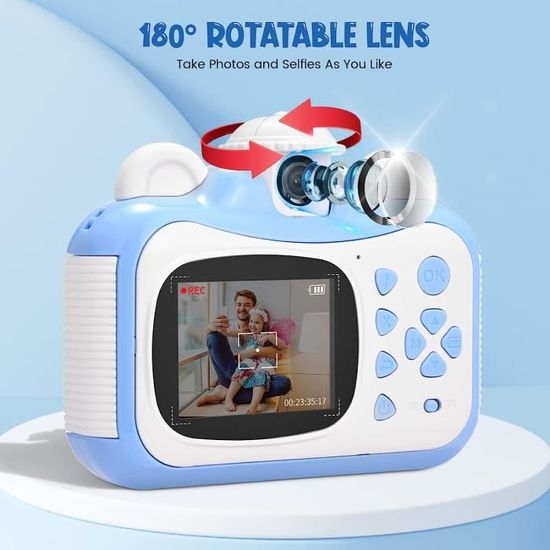 Améliorez les photos imprimées : les 6 filtres, 5 effets et 20 cadres donnent aux photos une touche de créativité, tandis que les 5 jeux amusants intégrés offrent un divertissement supplémentaire. Inclus : 1 câble USB de type C, 1 cordon et 1 carte micro SD de 32 Go pour stocker des milliers de photos. Appareil Photo Instantanée pour Enfants, 1080P Vidéo pour Les Filles et Les Garçons âgés de 3 à 12 Ans, Caméras Selfie pour Enfants avec Papier d'impression, Cadeaux d'anniversaire de Noël Spécialement conçu pour les 3-12 ans, il est super simple à utiliser et super fun. La qualité d'image est top avec sa résolution 1080P - vos enfants pourront immortaliser tous leurs moments préférés De plus, l'appareil photo instantané pour enfants est livré avec 6 crayons de couleur et 3 feuilles d'autocollants pour que les enfants puissent profiter du plaisir du bricolage. Camera Selfie Enfant Appareil Photo Instantané Enfant VAYOTOY Cadeau idéal pour les enfants : plus d'excitation éducative et de plaisir interactif, cette mini caméra pour enfants est le cadeau d'anniversaire, de Noël et de vacances idéal pour les garçons et les filles de 3 à 12 ans. De plus, votre enfant aura sa première caméra personnelle pour enregistrer ses moments de plaisir et vous n'aurez plus jamais à vous soucier que votre enfant utilise votre smartphone. Appareil Photo Instantané Enfant VAYOTOY Appareil Photo Instantanée Pour Enfants, 1080P Vidéo Cadeau Enfant 3 à 12 Ans Prenez autant de photos que vous le souhaitez, à tout moment et n'importe où, et capturez chaque merveilleux moment de joie. Appareil photo à impression instantanée : cet appareil photo à impression instantanée ne peut prendre qu'une photo sur papier noir et blanc pendant 3 secondes et dispose de 7 densités d'impression. Batterie puissante portable et rechargeable : la caméra de voyage adopte la technologie de charge de type C, 2 heures de temps de charge, offre jusqu'à 6 heures d'enregistrement photo ou vidéo continu.