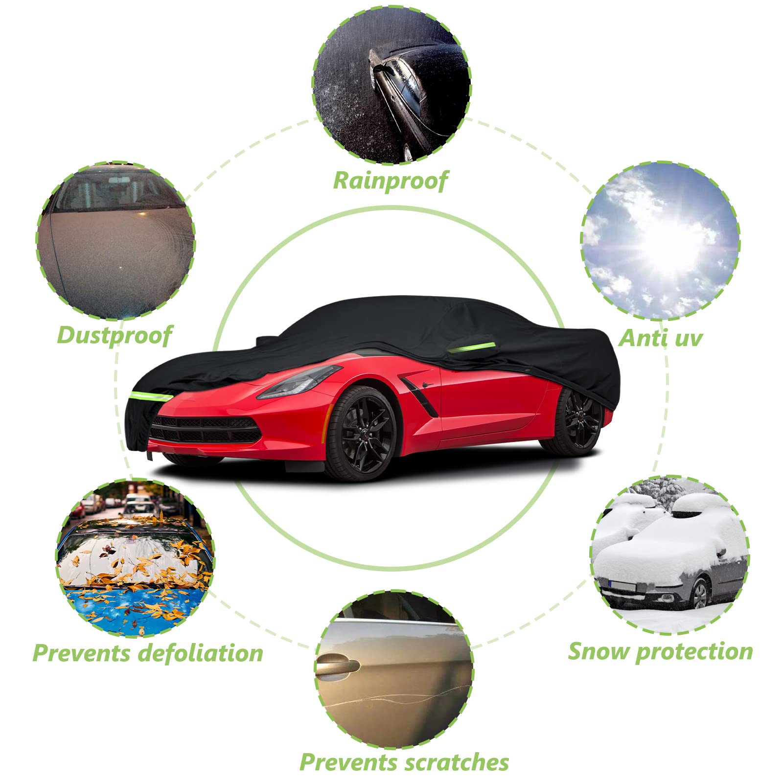 Quatre sangles utilisées sur les quatre roues pour garantir que la housse reste en place. Taille : 448,8 cm (L) x 186,9 cm (l) x 122,9 cm (H) **Remarque : cette housse de voiture sera serrée si votre C7 a un aileron arrière. Protège le rétroviseur dans toutes les directions. (2) Imperméable et coupe-vent. 【Protection contre les intempéries】 (1) Avec les qualités de rugueux, durable et portable, il sera adapté à tous les temps et saisons. Housse De Voiture Pour Chevrolet Corvette C4 | Bâche De Voiture Contre le vent fort, quatre sangles utilisées sur les quatre roues pour s'assurer que la housse reste à sa place d'origine. 【Matériau de qualité supérieure】 (1) Avec un tissu intérieur doux, il empêchera votre véhicule de retirer la peinture, du vieillissement et du grattage, et réalisera l'objectif de prolonger la durée de vie. La couleur noire et rouge rend votre C7 plus attrayante, même avec une housse de voiture. Avec quatre sangles, un verrou de sécurité et un sac de rangement, il offre une meilleure protection pour votre précieux véhicule Housse Imperméable Coupe Vent Voiture Housse De Voiture C7 Corvette - Protection Contre Les Intempéries - Imperméable Et Coupe-vent - Pour C7 Stingray 2014-2019, Pour C7 Chevy Corvette Protection Imperméable Coupe-vent 【Design coupe-vent amélioré】 (1). En cas de problème de qualité avec le produit que vous recevez, veuillez nous contacter immédiatement et nous vous enverrons une nouvelle housse de voiture gratuitement. Housse de voiture 420D imperméable pour C7 Corvette - Protection contre les intempéries et le vent - 6 couches - Protection complète contre la pluie, le soleil et les UV - Avec fermeture éclair Compatibilité du véhicule : conçue pour C7 2014-2019 Chevy Corvette Stingray Z51/Z06/Grand Sport. (2) Sangle élastique en bas à l'avant et à l'arrière pour garantir que la housse de voiture s'adapte à votre véhicule et pour empêcher votre housse de voiture de s'envoler, même en cas de vent fort. Conçue pour C7 2014-2019 Chevy Corvette Stingray Z51/Z06/Grand Sport. Il peut supporter un vent pauvre et fou offrant une protection complète pour votre véhicule.