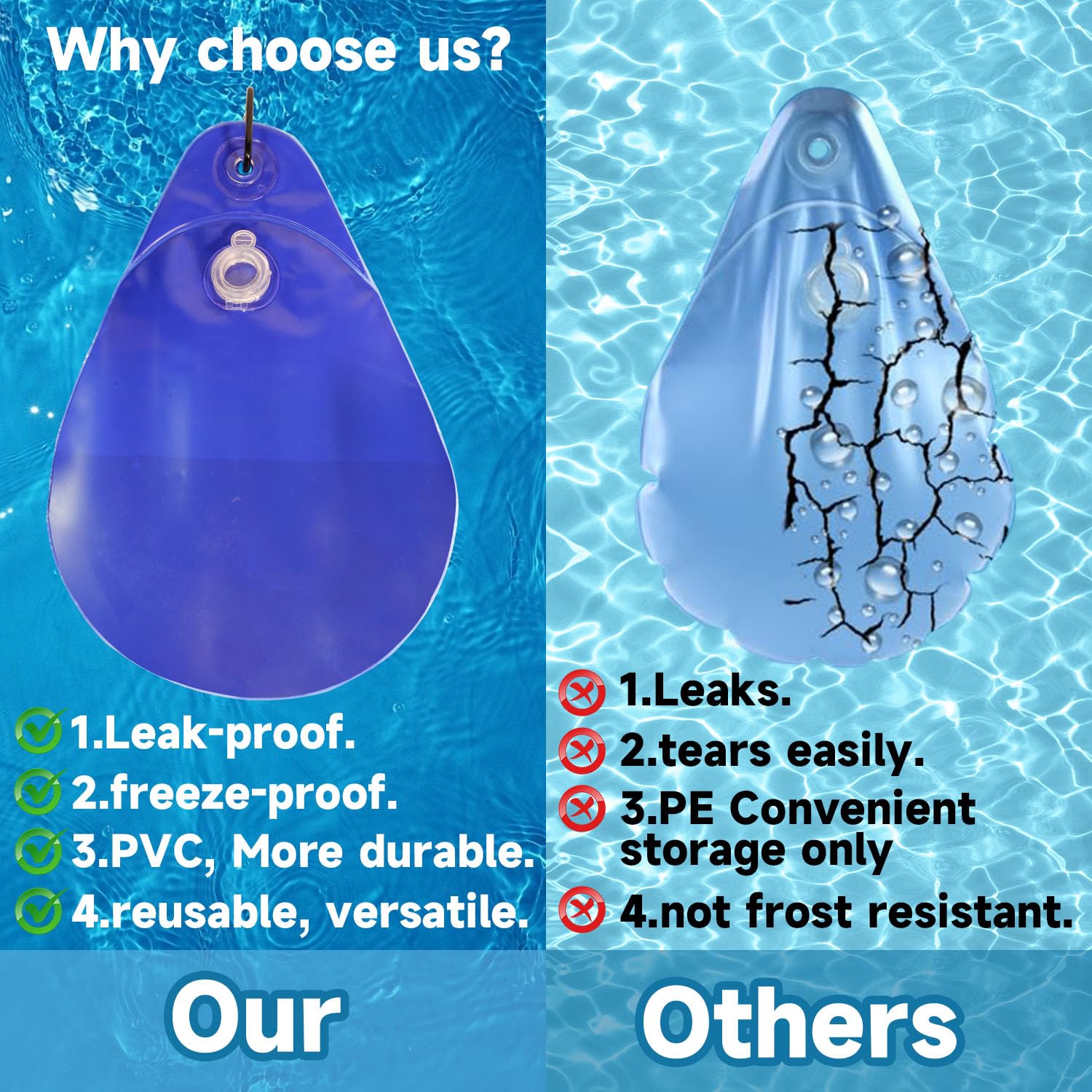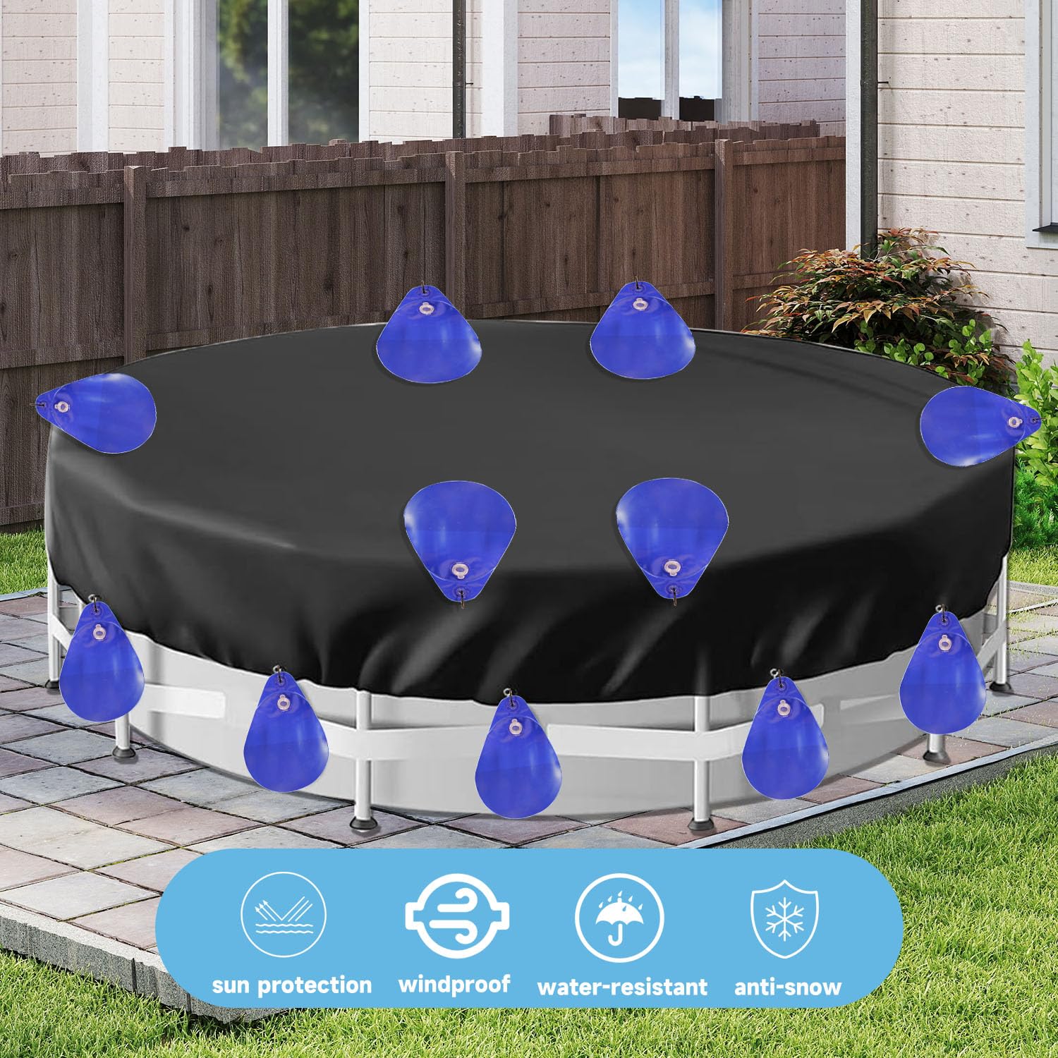 Caractéristiques : * Construction : fabriqués en matériau PVC, ces poids de couverture de piscine peuvent résister aux conditions hivernales difficiles, votre bâche de piscine reste bien en place sans dommages. Matériau en PVC fiable : fabriqués en PVC, ces poids de couverture de piscine sont conçus pour résister aux conditions hivernales difficiles, assurant que votre bâche de piscine reste solidement fixée sans dommages * Design anti-fuite : chaque sac de poids dispose d'un joint étanche pour empêcher l'eau de s'échapper, aidant à maintenir le poids approprié pour protéger votre piscine. *Nombre de pièces : 6., Contenu de l'emballage : 6 sacs à eau. Installation sans effort : les poids de couverture de piscine se remplissent simplement avec de l'eau, fixez les crochets intégrés aux bords de votre bâche de piscine, et soyez tranquille en sachant que votre bâche est solidement ancrée – aucun outil spécial ou installation compliquée n'est nécessaire, ce qui vous permet d'économiser du temps et des efforts. Lot De 6 Sacs à Eau Pour Bâche De Piscine Avec Crochets, Sacs D Piscine Avec Crochets Sacs Deau Lourds Pour Couverture De Piscine En Pvc Anti Fuite Sac A Suspendre A Remplir Poids Pour Bache De Piscine Dhiver 90519248 Les dimensions une fois rempli d'eau sont de 22,9 x 34,3 cm. Construction en PVC de qualité supérieure : poids de couverture de piscine fabriqués à partir de matériau PVC de haute qualité, ces poids de couverture de piscine résistent à la détérioration et maintiennent leur efficacité pendant de longues périodes d'utilisation, même pendant les mois d'hiver difficiles, aidant à prolonger la durée de vie de votre bâche de piscine. Chaque sac à eau dispose d'un joint étanche spécial qui empêche la perte d'eau au fil du temps, en maintenant des dimensions constantes de 22,9 x 34,3 cm lorsqu'il est rempli pour fournir une répartition fiable du poids sur votre bâche de piscine. *Polyvalent : parfaits pour les piscines hors sol, ces poids sont spécialement conçus pour fonctionner avec une variété de tailles de couverture de piscine, offrant flexibilité et commodité pour tous vos besoins de piscine d'hiver. Lot de 6 sacs à eau pour couvertures de piscine avec crochets * Dimensions : 34 x 24 x 5 cm., *Couleur : bleu. Bâche à bulles pour piscine Rio - 180 µ - Bleu - Habitat et jardin