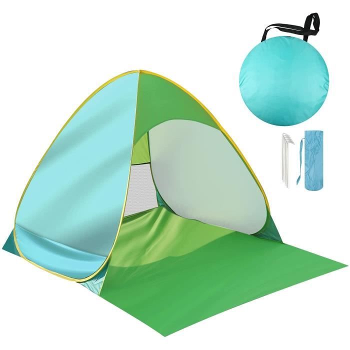 Tente de plage pour bébé avec protection UV 50 : la tente de plage pop-up est en polyester, qui peut bloquer efficacement jusqu'à 98 % de la protection UV nocive du soleil. Yafaca Tente de plage pop-up pour 1 à 3 personnes - Automatique - Extra large - UV 50 - Portable - 2 portes - Légère et facile à installer - Pour jardin, pêche, pique-nique : : Sports et LoisirsÀ propos de cet article Design pop-up automatique Vous et votre enfant pouvez profiter de vos vacances à la plage, dans la prairie ou dans le jardin sans vous soucier de la peau sensible. La tente pop-up est emballée dans un sac de transport pratique. Vous pouvez l'utiliser à la plage, dans le jardin ou au parc. Tente Plage Pop Up Tente De Plage Pop-up Pour 1 à 3 Personnes, Avec Protection Tente Parasol Bonne ventilation : le design de la tente de plage de l'ouverture de la porte et la fenêtre arrière en maille garantissent que le toit de plage est toujours bien ventilé. Bonne stabilité : la protection solaire de plage est équipée de 6 piquets pour maintenir notre tente pop-up au vent. Ne vous inquiétez pas des journées venteuses. Le balcon avant spacieux vous offre également suffisamment d'espace pour vous représenter confortablement les jambes pour que plus de personnes jouent. Outtec Tente de Plage Pop Up avec Protection UV, Sac de Transport, Anti UV Bébé, pour Famille, Camping, Jardin, Protection Solaire (Bleu Elle ne pèse que 850 kg et se replie pour une taille de voyage de 58 cm, de sorte qu'elle se glisse facilement dans le coffre d'une voiture. Largement utilisé: protection solaire toute la journée au parc, à la plage, à l’événement sportif ou à la détente sur le patio. Livré avec sa propre mallette de transport