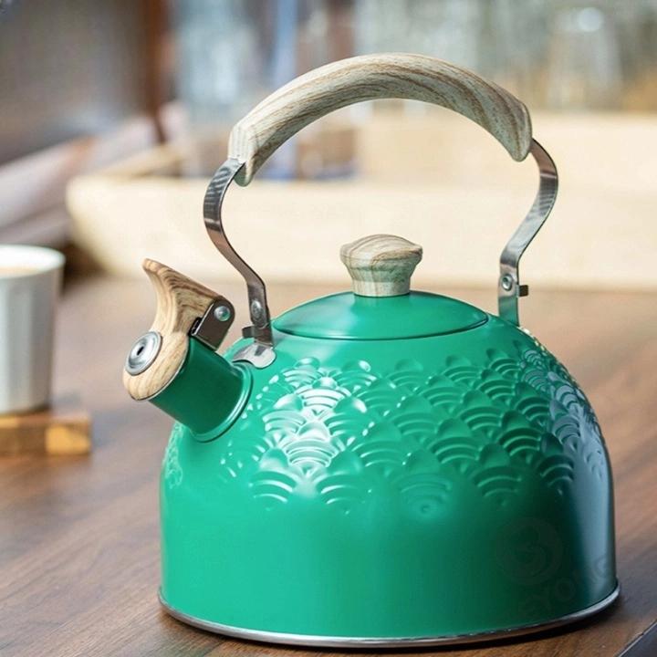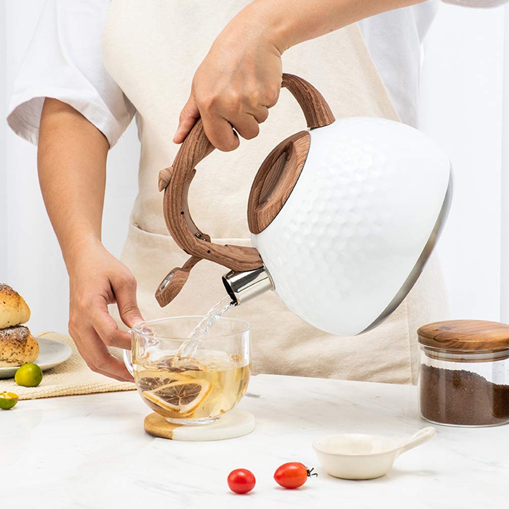 Utilisation : faire du café, reconstituer du lait en poudre, faire du thé, bouillir de l’eau Contenu de la livraison : 1 bouilloire sifflante - Principaux points forts · Couleur. Blanc · Matériau. Acier inoxydable · Marque. FYBlossom · Style. Thermique · Capacité. 2,8 Litres · Sifflement. Oui Matériau de qualité supérieure : bouilloire en acier inoxydable adapté à un usage alimentaire. Vous pouvez faire d'autres tâches ménagères, vous détendre, regarder des films ou jouer de la musique sans avoir à regarder la bouilloire Bouilloire compatible avec divers appareils de cuisson tels que les cuisinières à gaz, les cuisinières à induction, les plaques vitrocéramiques électriques, les plaques de cuisson halogènes, les poêles à bois, etc. Theiere Sifflante CEHVOM Bouilloire En Acier Inoxydable Pour Camping, Bouilloire Vintage 3l Sifflet De Cuisinière Avec Poignée Ergonomique, Bouilloire Classique Sifflante Avec Base Chauffante Rapide Bouilloire 2.8 Litres Cuisinière Réservoir intérieur poli, inoxydable et inodore. Design sûr : poignée résistante à la chaleur, grain du bois résistant à l’ébullition, bec verseur avec clapet relevable. La partie supérieure est entièrement fermée, aucune vapeur ne sort par le haut Facile à remplir et à verser : poignée ergonomique en bakélite, prise en main confortable et anti-brûlure. SHANGZHER La bouilloire à sifflet pour café et thé en acier inoxydable Le clapet relevable du bec verseur permet de verser l'eau chaude facilement et en toute sécurité Bouilloire Sifflante 3L, Inox Bouilloire Sifflante Induction, avec motif, Poignée Résistante à la Chaleur, Théières pour Thé et Café, Convient pour gaz et Induction, Blanc et violet