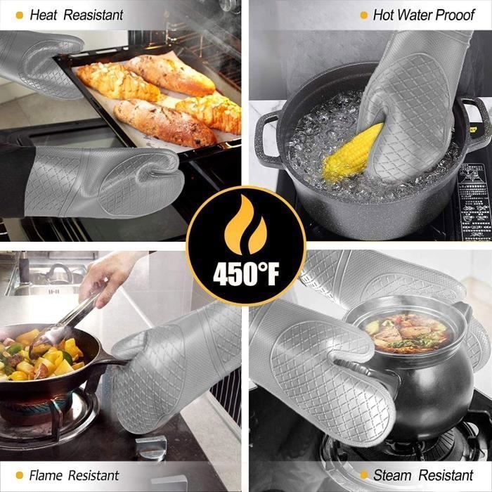 Utilisation polyvalente pour manipuler des articles chauds dans la cuisine, adaptée à la cuisson, aux grillades, au ondes ou aux casseroles chaudes. Mitaines De Four Résistantes À La Chaleur - Mitaines De Four - Silicone - Cyslmuk - 2 Paires - Noir à retrouver en drive ou livraison au meilleur prix dans le rayon Pièces détachées pour friteuse. Profitez de nos promotions et faites vous livrer ou venez retirer vos courses rapidement dans votre magasin Description du produit 2 Pièces Mitaines de Four en Silicone, Mini Gants de Four Résistants à la Chaleur Mitaines de Pincement Manique pour la Cuisine et la Pâtisserie (Noir) Conçu de manière ergonomique pour ajustement confortable, ce qui permet de tenir facilement les casseroles, poêles, plats et plateaux chauds. De plus, ils sont faciles à nettoyer et vont au lave-vaisselle Ces mini gants de cuisine sont de conception épaissie, offrant une isolation supplémentaire pour protéger vos mains des brûlures causées par les casseroles chaudes, les poêles ou les grilles du four à ondes. Leur flexibilité et leur surface antidérapante améliorent considérablement la manipulation des objets chauds. Ensemble de mini mitaines de four avec pincement - Mitaines de Fabriqué avec matériau en silicone de qualité alimentaire de premier ordre qui offre une excellente adhérence, garantissant que vos mains sont totalement en sécurité pendant la cuisson ou la pâtisserie De plus, ils sont faciles à nettoyer et vont au lave-vaisselle Conçu de manière ergonomique pour un ajustement confortable, ce qui permet de tenir facilement les casseroles, poêles, plats et plateaux chauds. Spécifications : Type d'article : Gants de four Matériau : Silicone Poids : environ . Sélection des fonctions: Il existe de nombreux choix pour ces mini-gants à assortir. Nous avons une paire de paires, deux paires de paires, vous pouvez choisir deux paires de la même couleur, ou vous pouvez en choisir deux sans couleurs Gant Four Silicone Mitaines à Four En Silicone (lot De 2) – Roxanne Cuisine Manique Pincement Chaleur Avec un mélange de fonctionnalité et de style, ils constituent un excellent ajout à n'importe quelle cuisine.