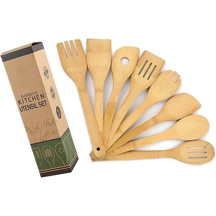 Ustensiles de cuisine en bambou décorés au pyrograveure Ustensile Cuisine Bois GLOBLELAND 6 Pièces Ensemble D'Ustensiles De Cuisine En Bois Avec Cuillères En Bambou Sculptés En Forme D'Animaux Spatule De Cuisine Gravée En Bois Pour Mère L'amie Femmes Cadeau Amusant Noël, anniversaire, La Saint Valentin, Fête des mères, pendre la crémaillère, anniversaire, si l'ensemble de spatules de cuisine à découper est utilisé comme ustensiles de cuisine ou comme décor de cuisine, des motifs exquis et une prise en main confortable raviront le chef cuisinier! Ensemble de cuisine gravé pour chat: 6 pièce de cuillères en bois sur le thème du chat de 300x60mm/12x2., 5 pouces, ensemble d'ustensiles de cuisine comprenant une spatule fendue, cuillère trouée, cuiller à soupe, spatule fourchue, spatule monotrou et spatule, chaque style 1pcs. Clear Etched Non Fading: Les images sur les ustensiles de cuisine en bois sont gravées. Ensemble de cuisine gravé : le forfait comprend 6 ustensiles de cuisine en bois. · Taille et sensation de tenue Surface lisse et agréable au toucher. Ensemble de spatule en bambou 7 pièces avec suppor... – Grandado Après le nettoyage, accrochez-les et séchez-les à l'air naturellement. Cuillères de cuisine en bambou naturel : du bambou naturel de haute qualité est utilisé comme matériau pour les ustensiles de cuisine., ., Surface lisse et agréable au toucher, léger et solide, ne gâchera pas le goût de vos aliments.