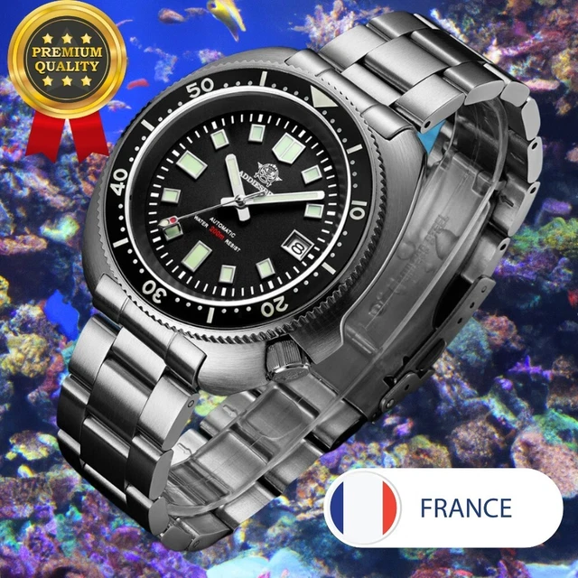 L'ADDIESDIVE Montre plongée automatique pour hommes est un modèle qui séduit par son design élégant et son style rétro. Dotée d'une lunette en céramique et d'un verre saphir de haute qualité, elle offre une impression de solidité et une lisibilité remarquable, renforcée par un lume performant Taille confortable et utilisation facile : Le boîtier mesure 39 mm de diamètre, 49 mm de longueur, 12 mm de hauteur, 20 mm d'entrecornes et 220 mm de circonférence, pour un confort optimal. Automatic Mechanical Watch ADDIESDIVE 38mm Montres Automatiques Pour Hommes NH35A Mouvement Acier Inoxydable Montre Homme Montre Mécanique Acier Inox Bracelet Cuir Mouvement mécanique, précision : Équipée d'un mouvement mécanique automatique japonais 8215, elle est dotée d'un cadran à trois aiguilles et d'une fonction calendrier. Le cadran et les aiguilles sont recouverts de Super-LumiNova C3, qui émet une fluorescence verte brillante la nuit, facilitant la lecture de l'heure dans l'obscurité, idéale pour les aventures en plein air et les activités nocturnes. Étanchéité à 200 m : Avec une étanchéité à 200 m, cette montre est idéale pour la natation, la plongée avec tuba et autres sports nautiques. Montre homme plongée 3D, nuage mer - Test et Avis MONTRE PLONGÉE AUTOMATIQUE ADDIESDIVE Mouvement Japonais SEIKO NH35a 200m EUR 130,00 - FR Le bracelet en cuir véritable noir, souple et confortable, épouse parfaitement le poignet et affiche un style professionnel classique. Cadran lumineux pour une lisibilité nocturne : Le verre saphir synthétique avec traitement antireflet suisse Shadowless offre une transmission lumineuse élevée, une protection antireflet et une lecture claire. Matériaux haut de gamme, durabilité : Le boîtier et le fond sont en acier inoxydable 316L avec une finition brossée pour une résistance aux rayures et à l'usure, ce qui les rend durables et robustes.