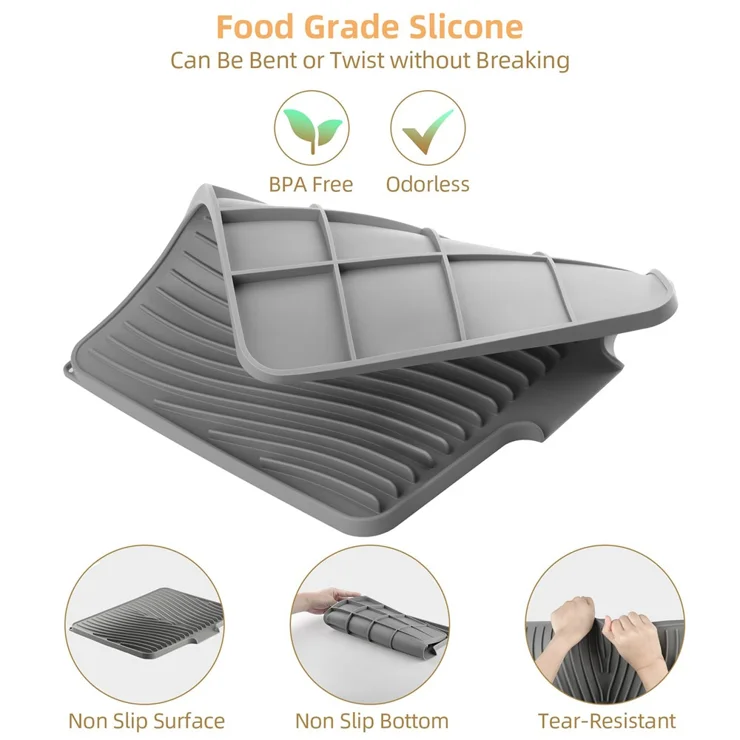silicone drying mat the hygienic choice for drying dishes, ensuring a clean, healthy kitchen environment Premium Silicone: The no-spill silicone worktop saver is crafted from silicone, safe, flexible, and easy to clean. Fast Drying & AntiSlip Design: The raised stripe pattern on this silicone drying mat promotes efficient drainage and airflow, allowing water to evaporate quickly while keeping your countertop clean and dry. Easy to Clean & Space Saving Storage: Cleanup is effortless—just wipe it down or place it in the dishwasher. The anti-slip texture ensures dishes stay in place while drying. Tapete De Silicona Para Cocina No-Spill Silicone Worktop Saver U2013 Heat- Resistant & Non-Slip Mat For Drip-Free Drying, 40x32cm,Non-Slip Kitchen Mat With Built-in Slope Drain Lip For Kitchen Sink (1 Pcs Stone Mat Multi-Functional Kitchen Essential:More than just a drying mat, this silicone thickened non-slip insulation dish drying mat serves as a fridge liner, baking mat, coffee station mat, or non-slip surface for cutting boards This no-spill silicone worktop saver is flexible and can be rolled or folded for easy, space-saving storage when not in use