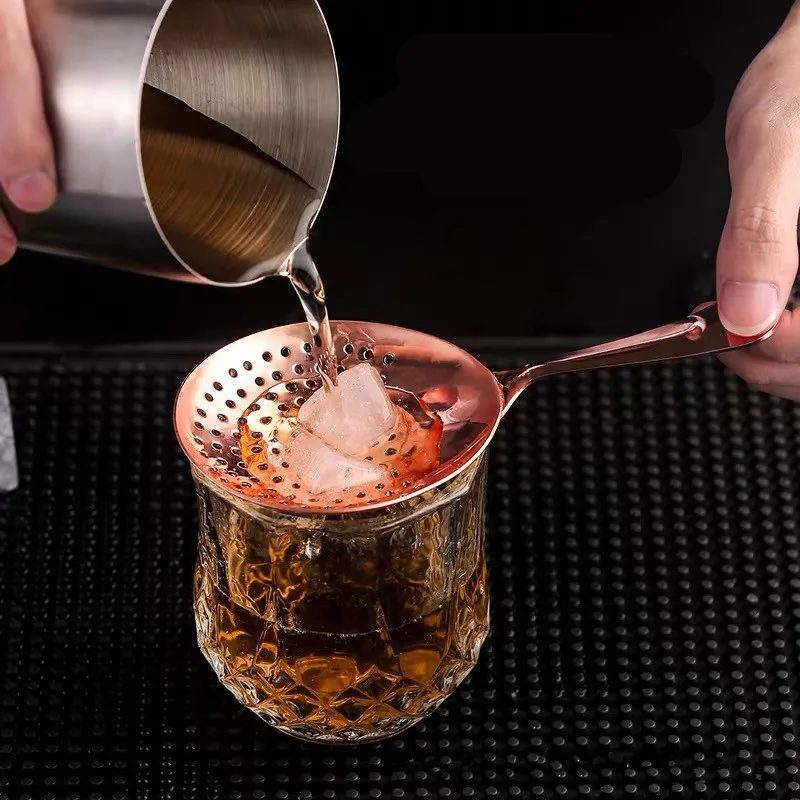 Trous denses et uniformément répartis sur la surface bombée, filtration rapide et efficace des matières premières et de la glace. Passoire à cocktail à ressort haute densité en acier inoxydable - Accessoire de bar à cocktail filtrant pour bar à domicile et barman professionnel (doré Une passoire à glace est un ustensile spécial qui empêche la glace de glisser vers le bas. Nombreuses applications : cette passoire julep peut être utilisée non seulement pour filtrer la pâte à glace lors du mélange de boissons, mais également lors de la cuisson, de la préparation de desserts et de la fabrication de glaces. Conçu pour durer des années d'utilisation constante. Matériau en acier inoxydable : cette passoire julep est fabriquée en acier inoxydable de qualité supérieure. Pas facile à casser et à plier, durable à utiliser. Rapide à filtrer : les fentes parfaitement proportionnées permettent de filtrer rapidement sans pulpe ni glace dans votre cocktail UTILISATION D'UNE SEULE MAIN Julep Strainer Inoxydable Passoire Cocktail Acier Inoxydable 304 - Cuillère Julep Professionnelle | Pour Bars Et Mixologie Accessoire Mixologie Professionnel Filtre à Glace Pour Shaker Passoire Cocktail Passoire Julep - YOSOO - Acier Inoxydable - Durable - Filtrage Rapide - Cuivre - La Cave Passoire Chinois Inox Cuillère Passoire Cocktail Utilisez cet outil de barman vintage pour filtrer la pulpe, la glace, les graines, les fruits des cocktails lors du mélange. Forgé en acier inoxydable de haute qualité, tamis d'une seule pièce, particulièrement adapté aux gobelets de mixage ronds. Polissage miroir exquis, clair et brillant, beau design. La poignée et la cuillère sont solidement fixées ensemble, pas facile à casser, accès sans problème. TROUS DE FUITE FINS